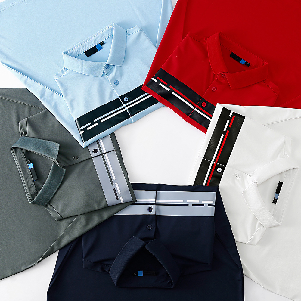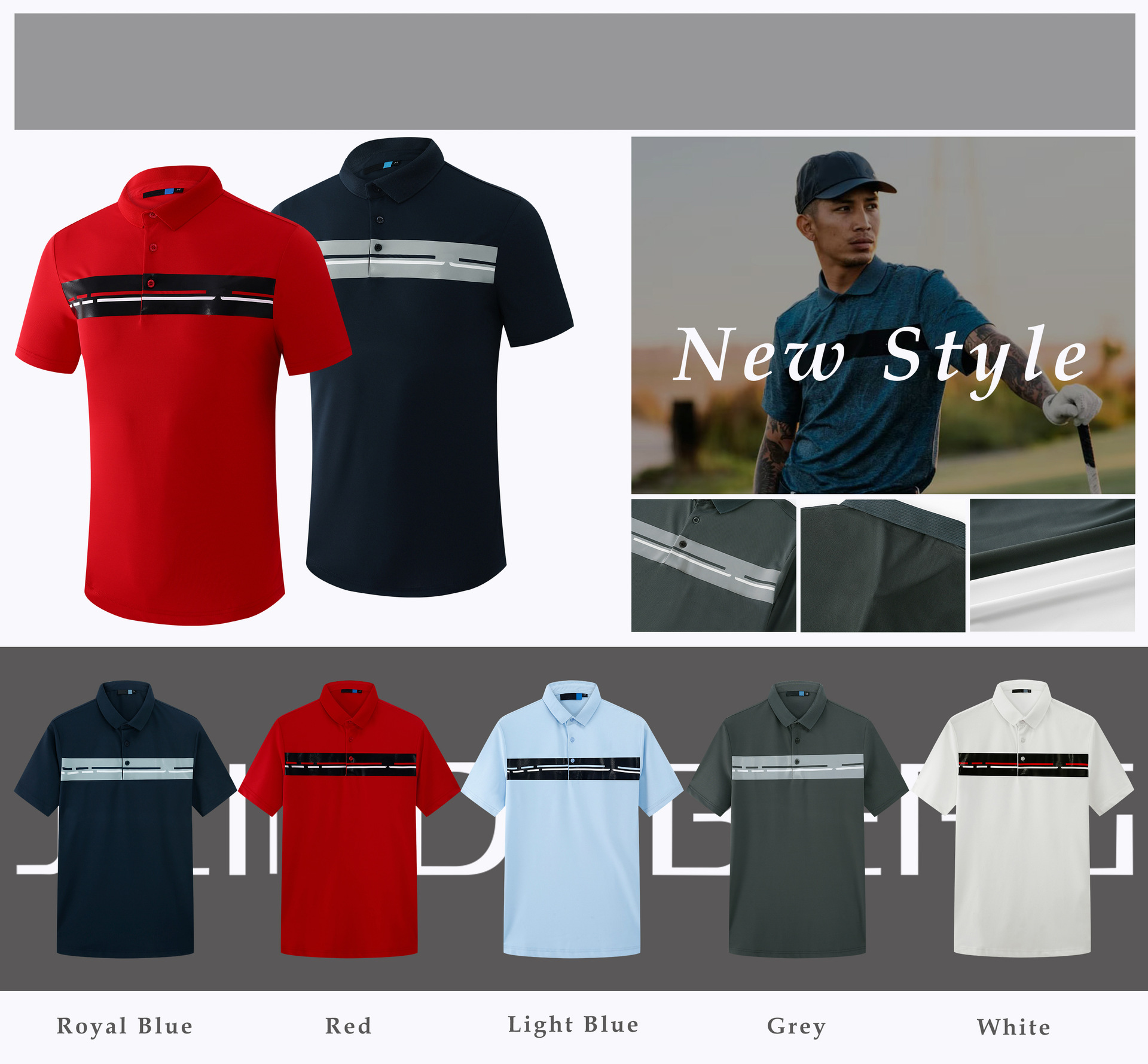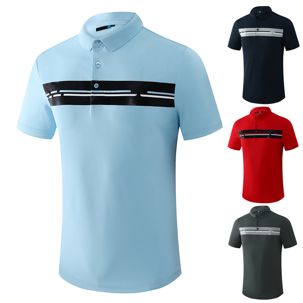 여름 뜨거운 판매 골프 의류 남성 옷깃 폴로 셔츠 스트라이프 느슨한 짧은 소매 통기성 최고 빠른 건조 스포츠 티셔츠