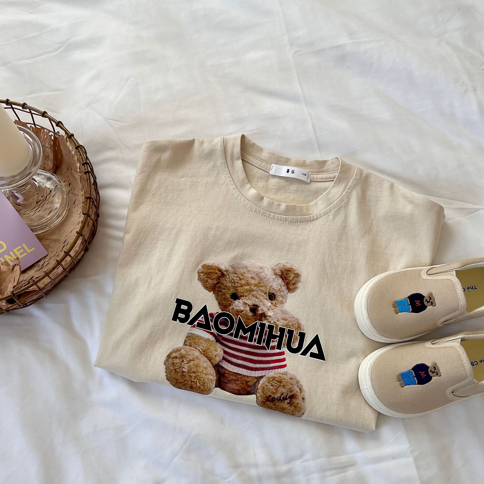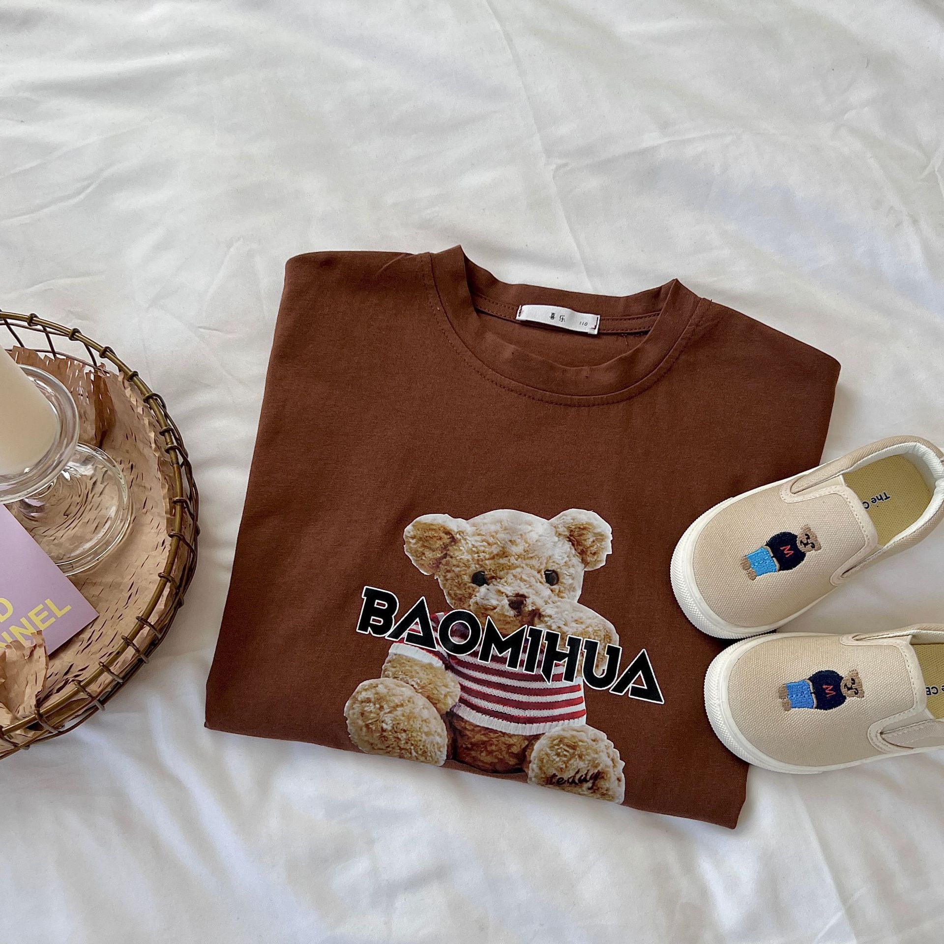 Miao Xuan 아동복 아동 여름 반팔 티셔츠 2023 새로운 한국 스타일 만화 순면 탑 여아 여름 반팔