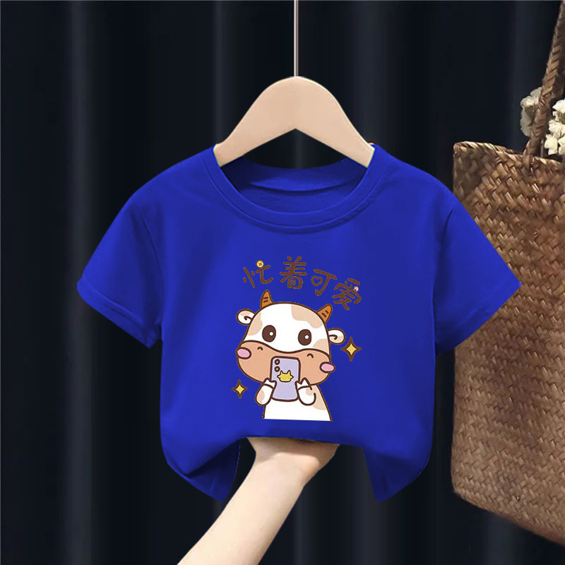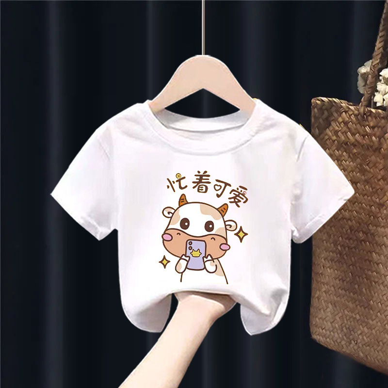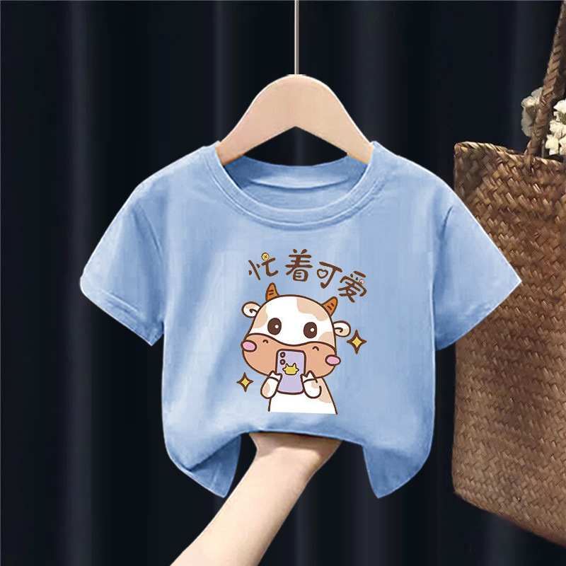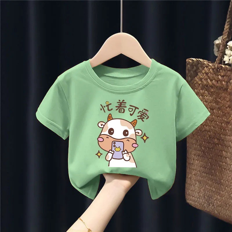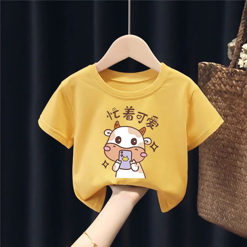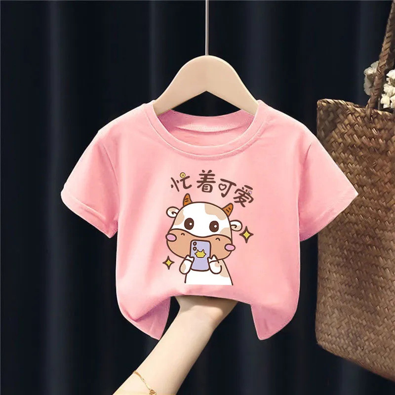 퓨어 코튼 보이즈 및 걸스 반팔 티셔츠는 새로운 여름 중형 및 대형 어린이의 간단한 캐주얼 아기 아동복 탑을 2023.스토어 가기