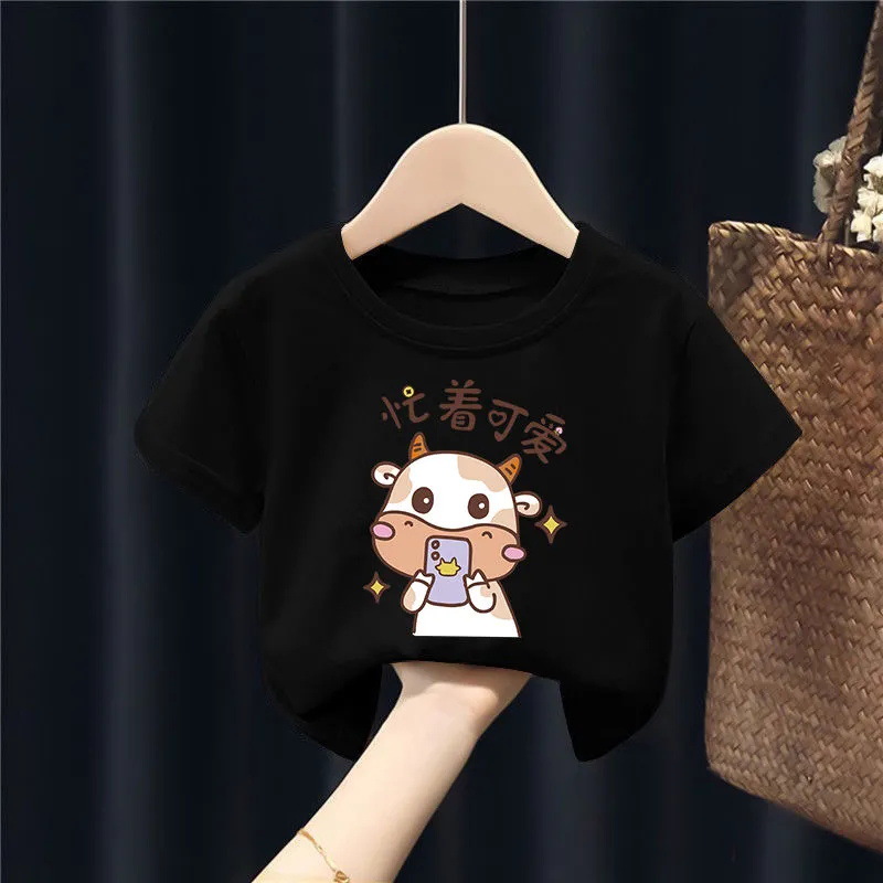 퓨어 코튼 보이즈 및 걸스 반팔 티셔츠는 새로운 여름 중형 및 대형 어린이의 간단한 캐주얼 아기 아동복 탑을 2023.