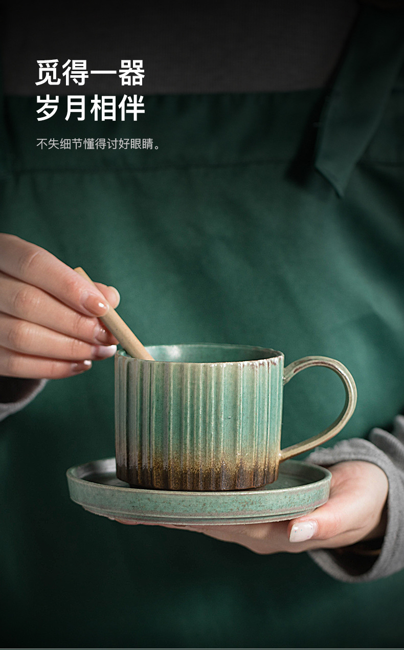 석기 커피 컵과 접시 세트 세트 수제 일본식 빈티지 커피 컵 아트 컵 세라믹 수제 커피 컵 물 컵스토어 가기
