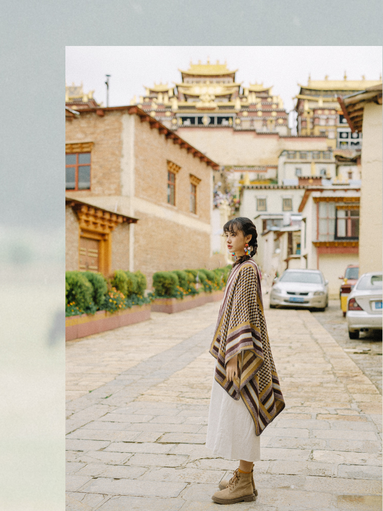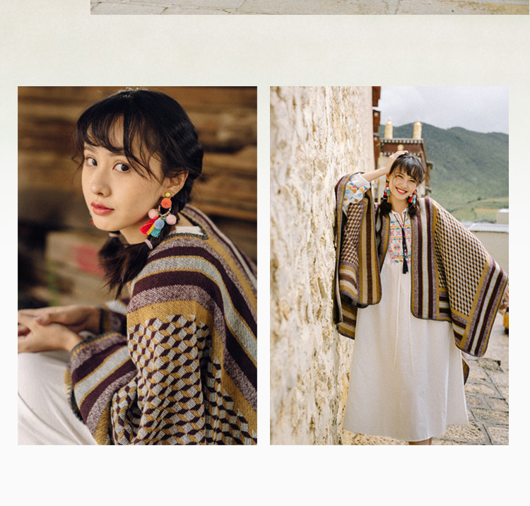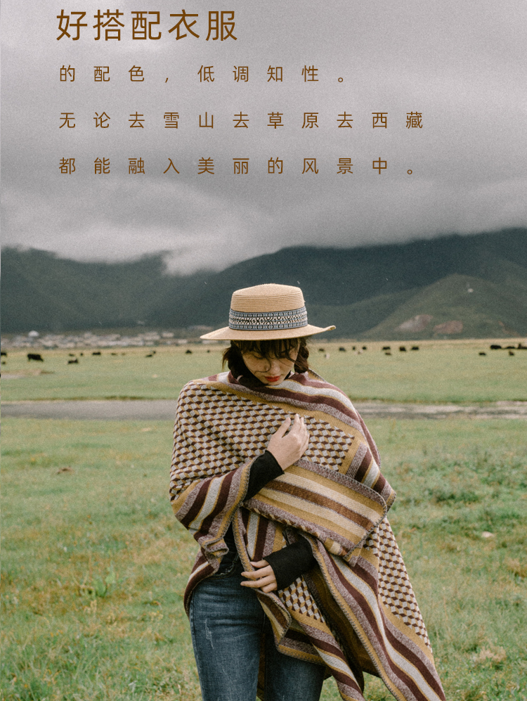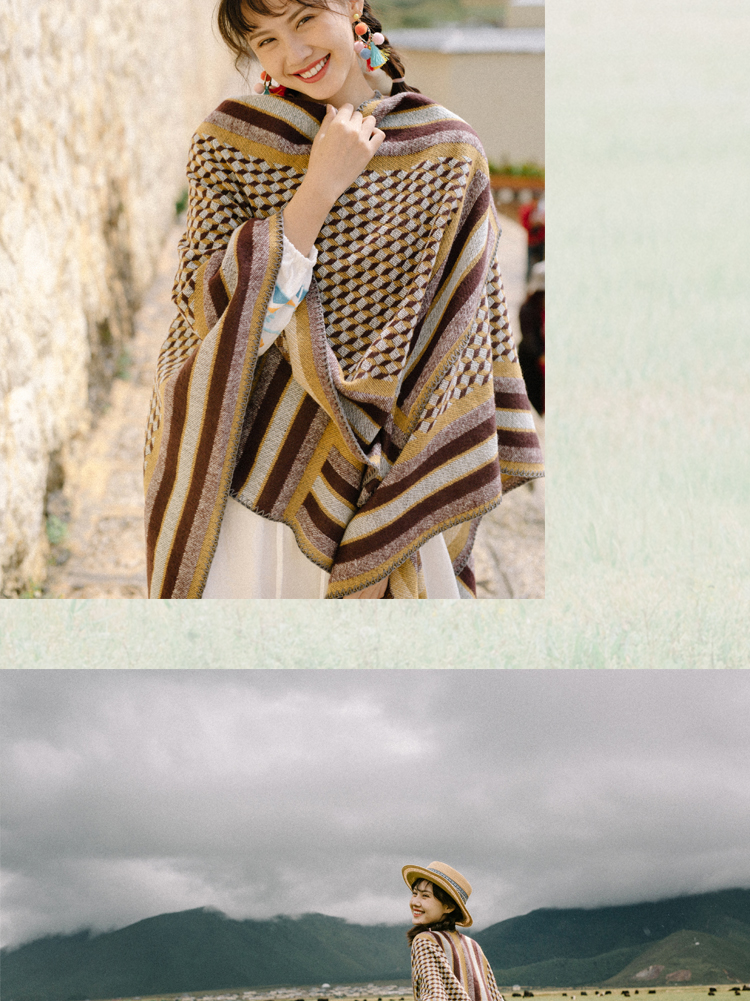 큰 두꺼운 에스닉 스타일 에어컨 스카프 여행 사진 숄 여성의 가을과 겨울 케이프 스타일 코트스토어 가기