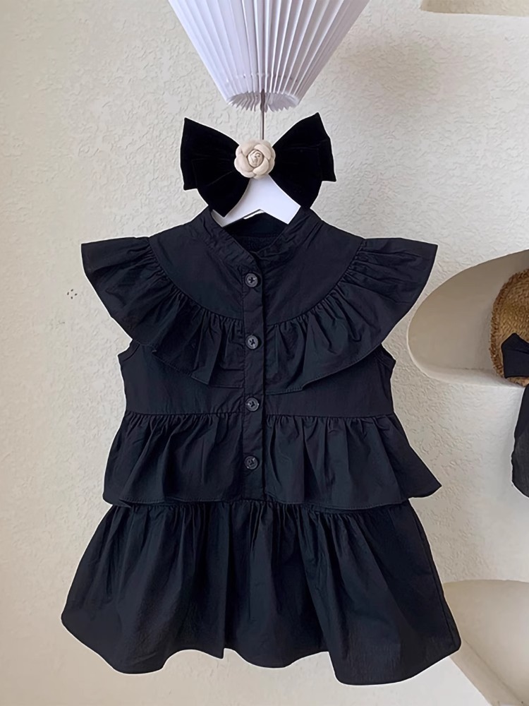 여아 원피스 한국 아동복 23 여름 새로운 세련된 패션 어린이 주름 소매 민소매 케이크 스커트