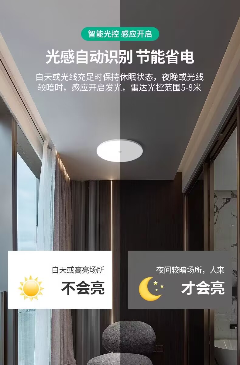 음향 및 조명 제어 천정 램프 인체 유도 침실 램프 거실 램프 12W18W 램프 통로 지하 차고 계단