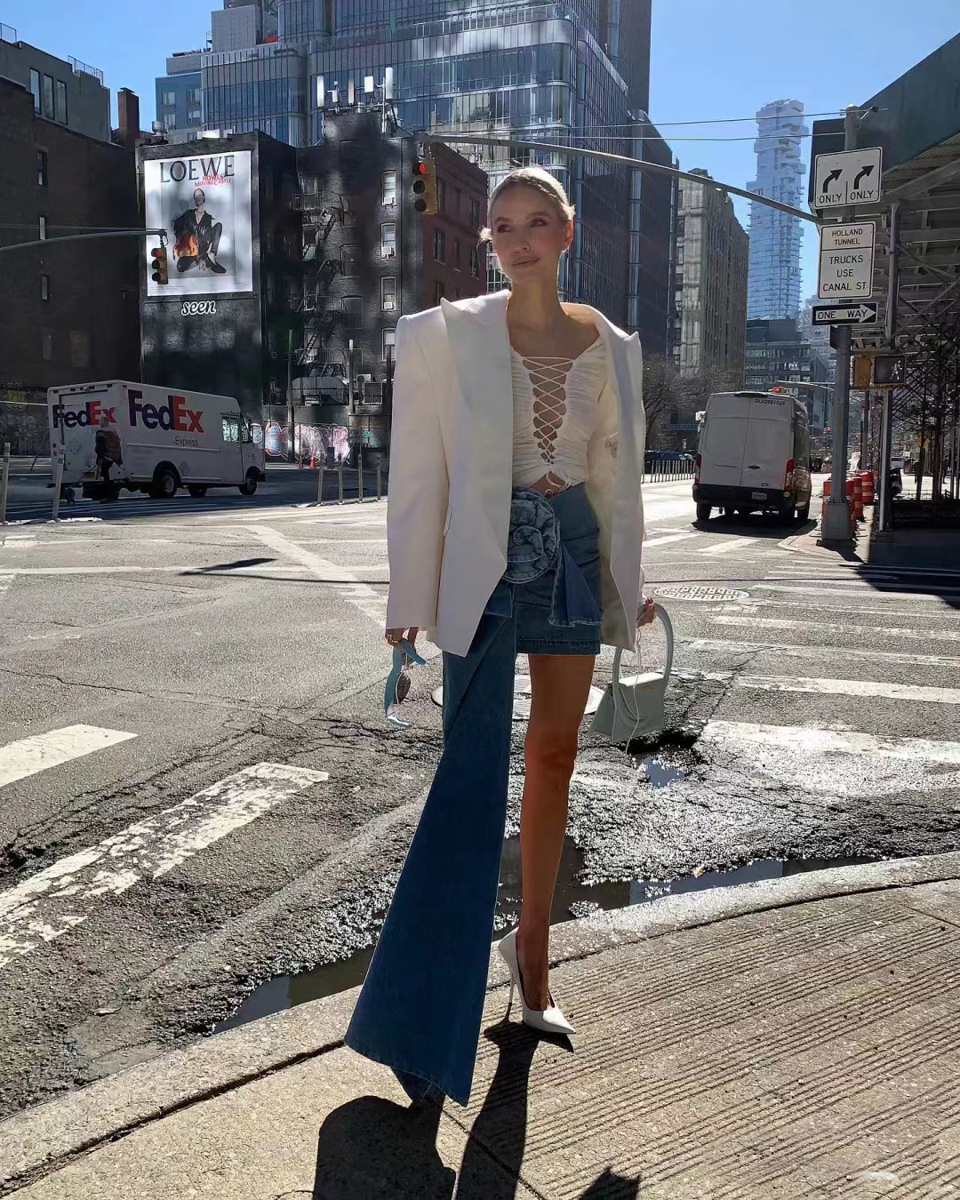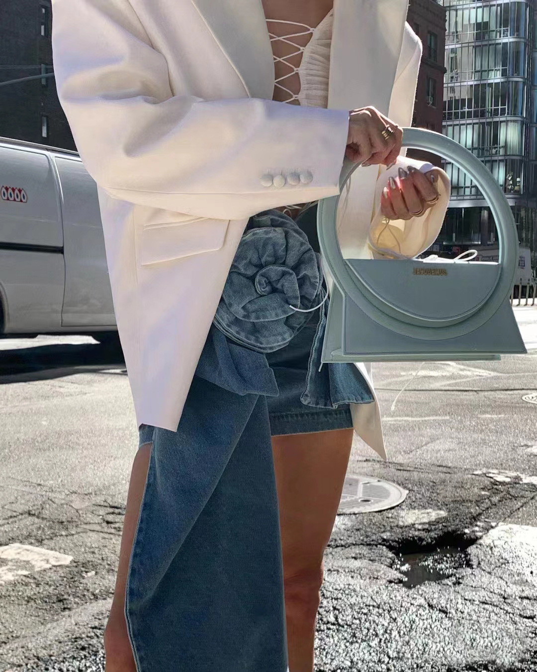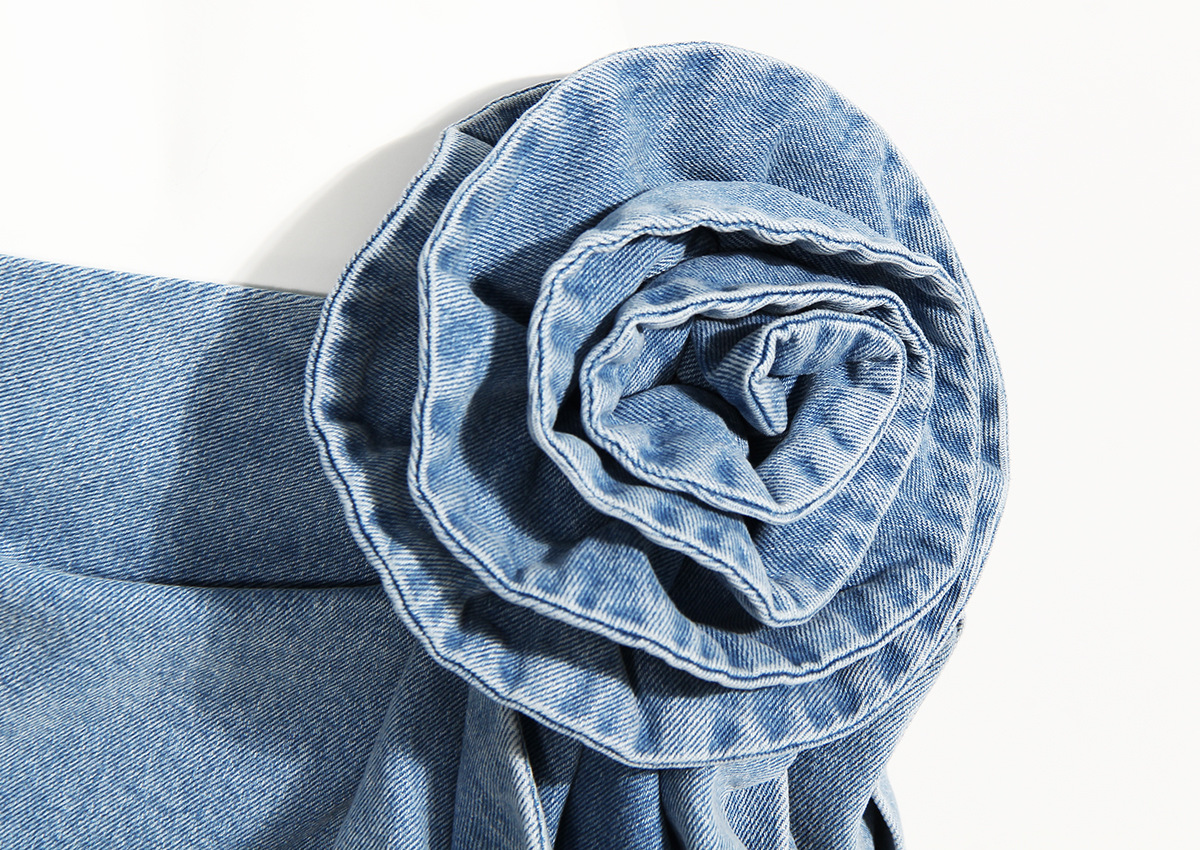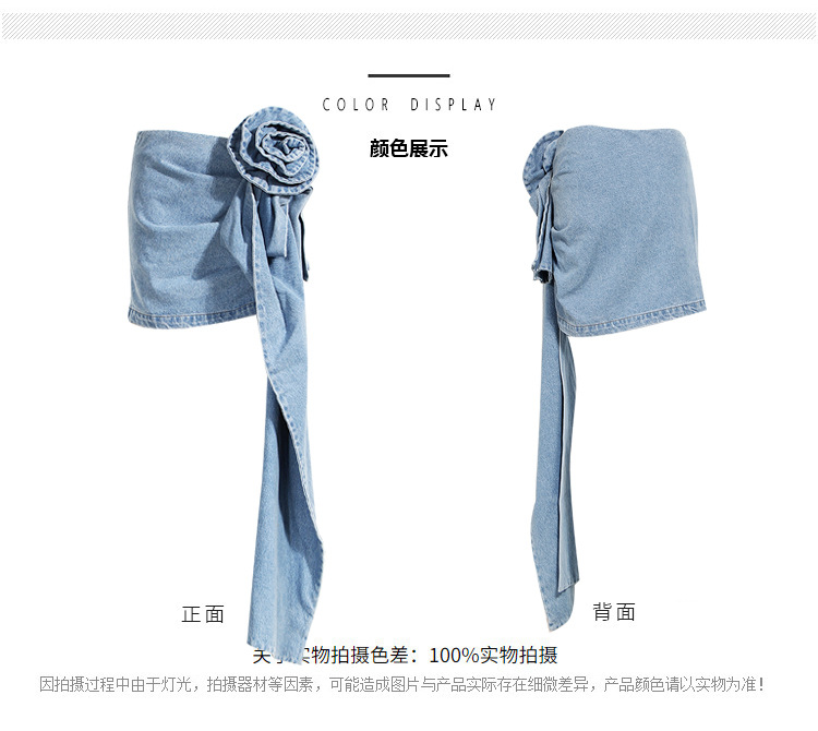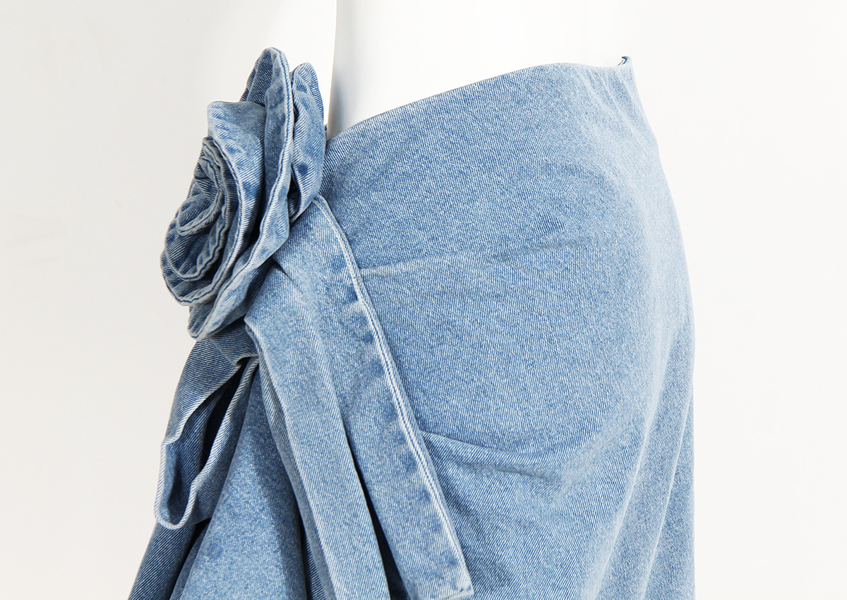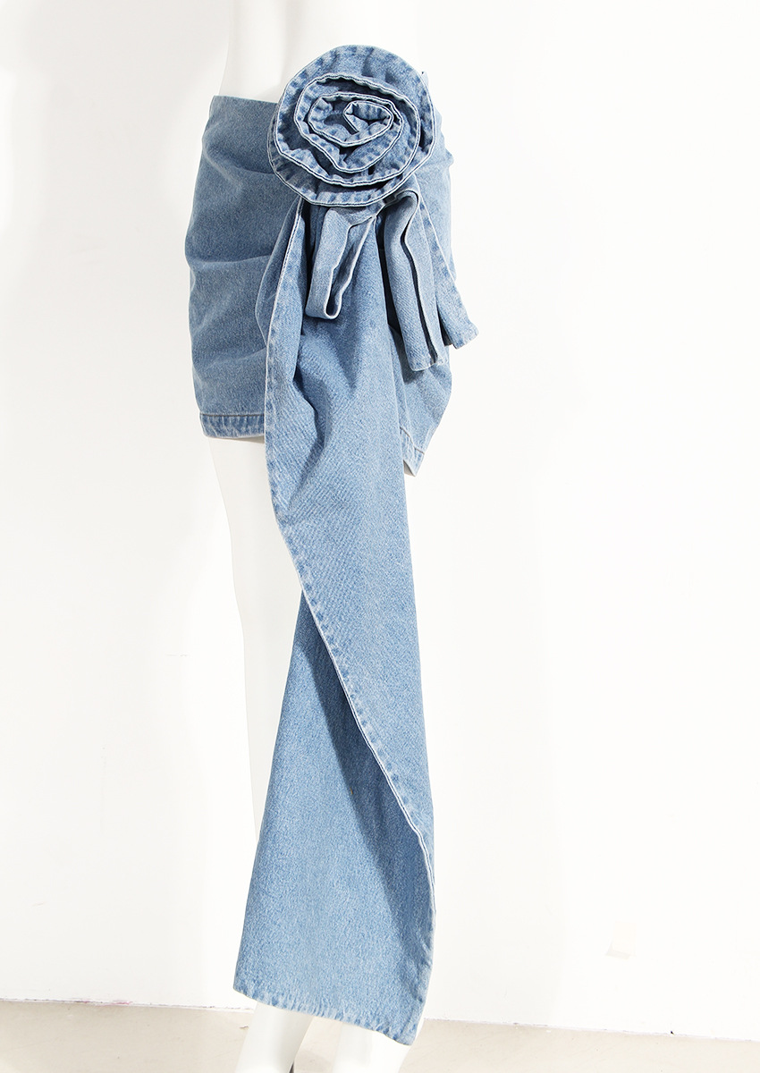 25 봄 여름 신상 데님 숏 스커트 3D 입체 장미 드레이프 롱 패치 하이웨이스트 힙 커버 미니 데님 스커트