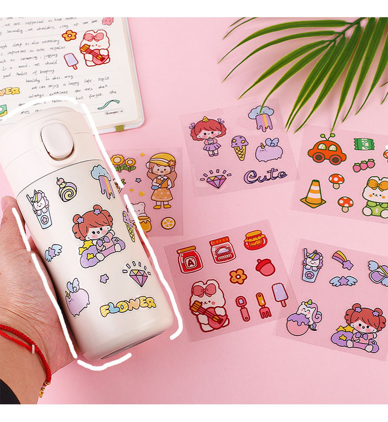 만화 귀여운 어린이 손 계정 컵 스티커 도매 투명 컬러 컵 스티커 방수 PVC 스티커 종이스토어 가기