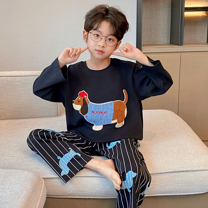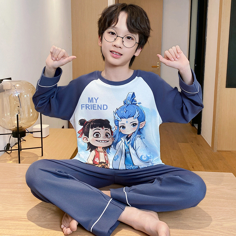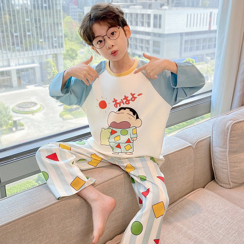 순면 잠옷 부모-자식 성인 어린이 소년 큰 어린이 8 세 12 긴 소매 봄과 가을 순면 소년 가을 홈스토어 가기