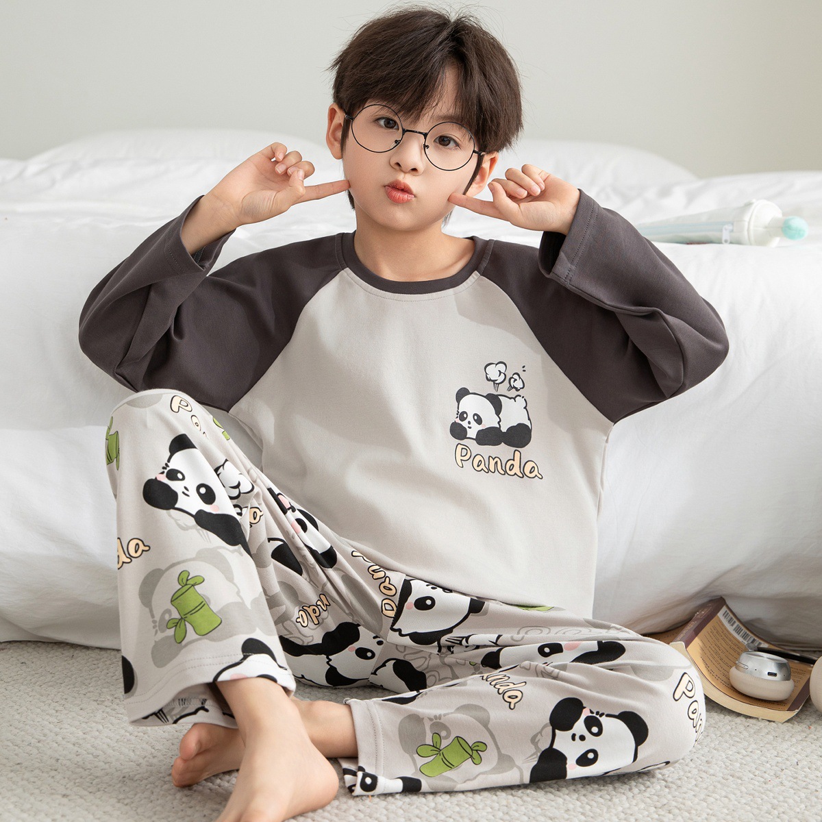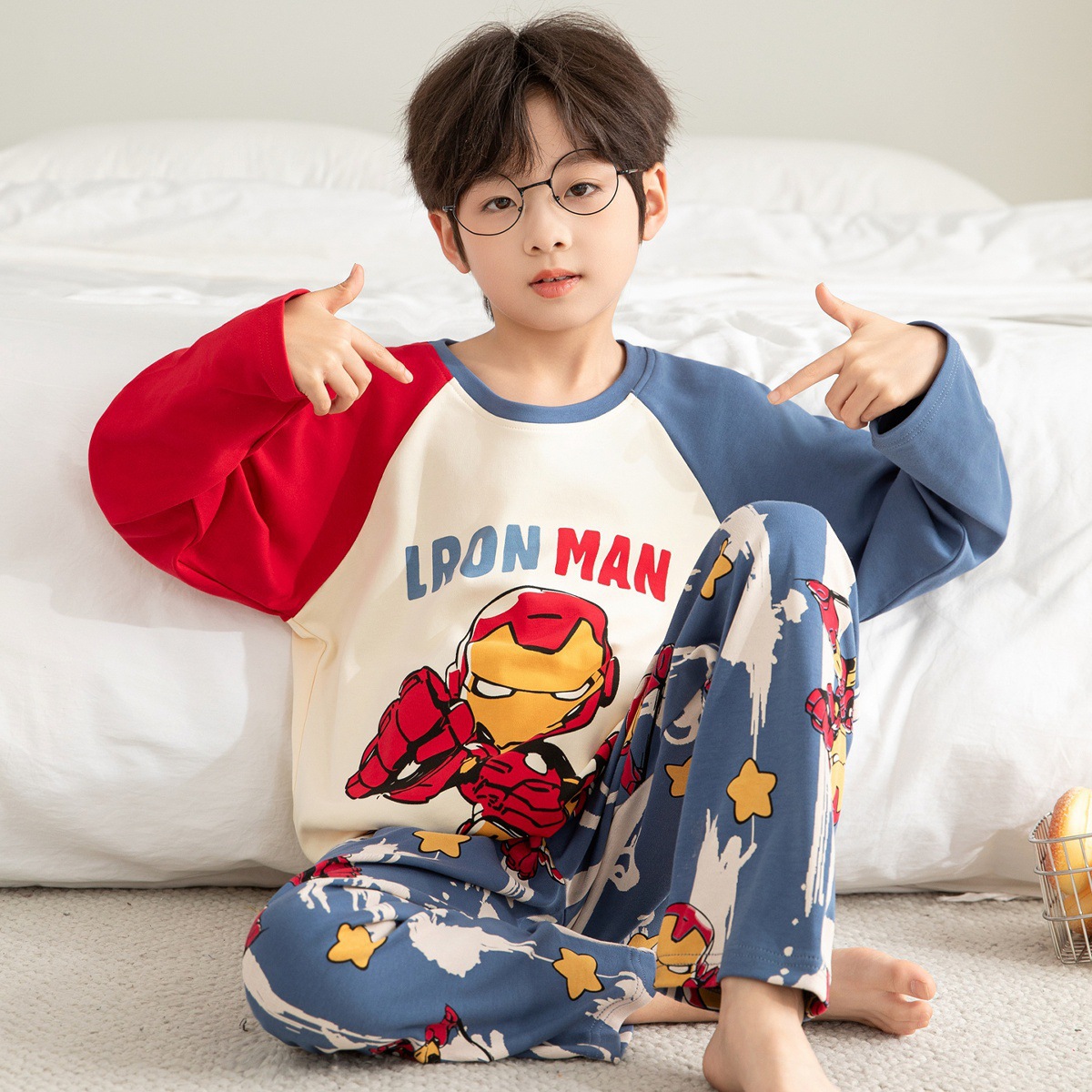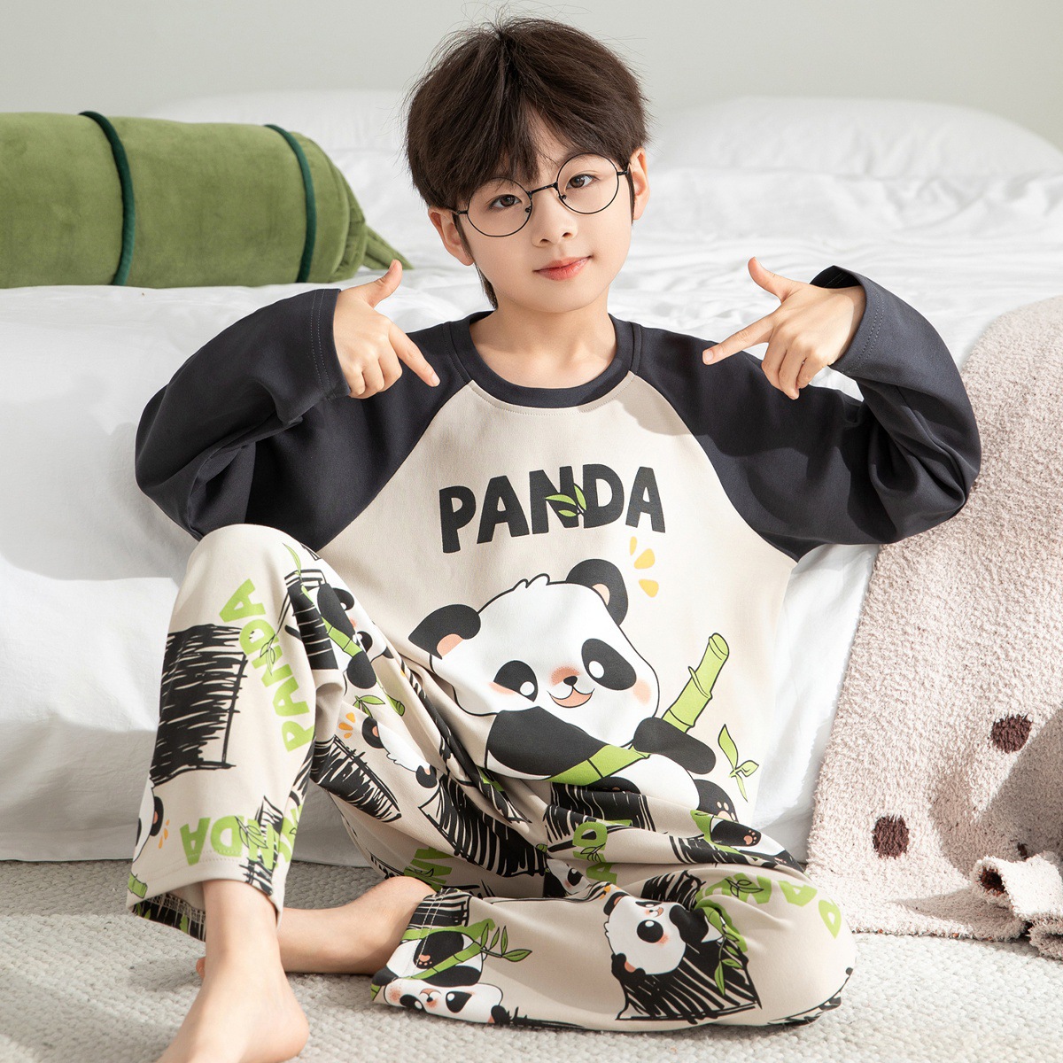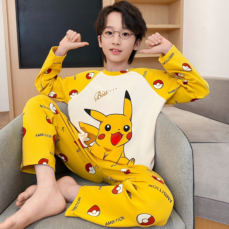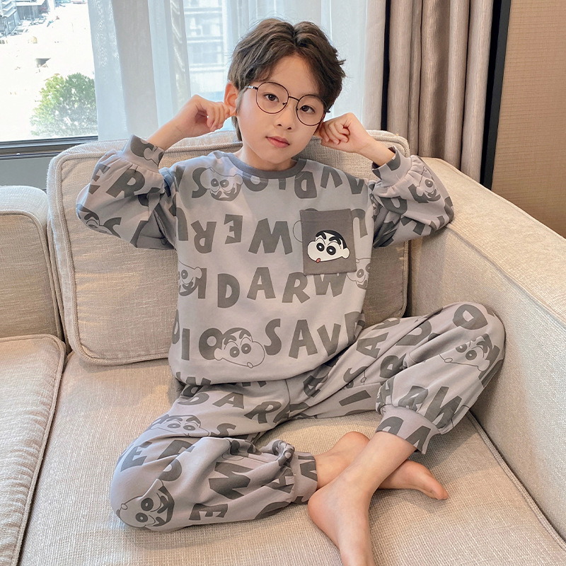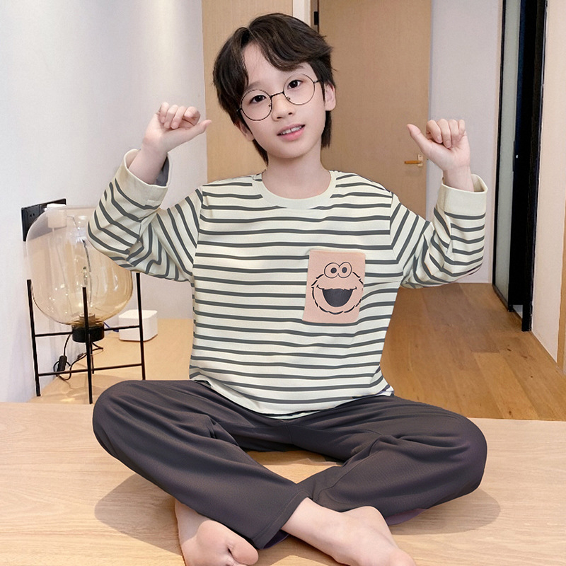 순면 잠옷 부모-자식 성인 어린이 소년 큰 어린이 8 세 12 긴 소매 봄과 가을 순면 소년 가을 홈