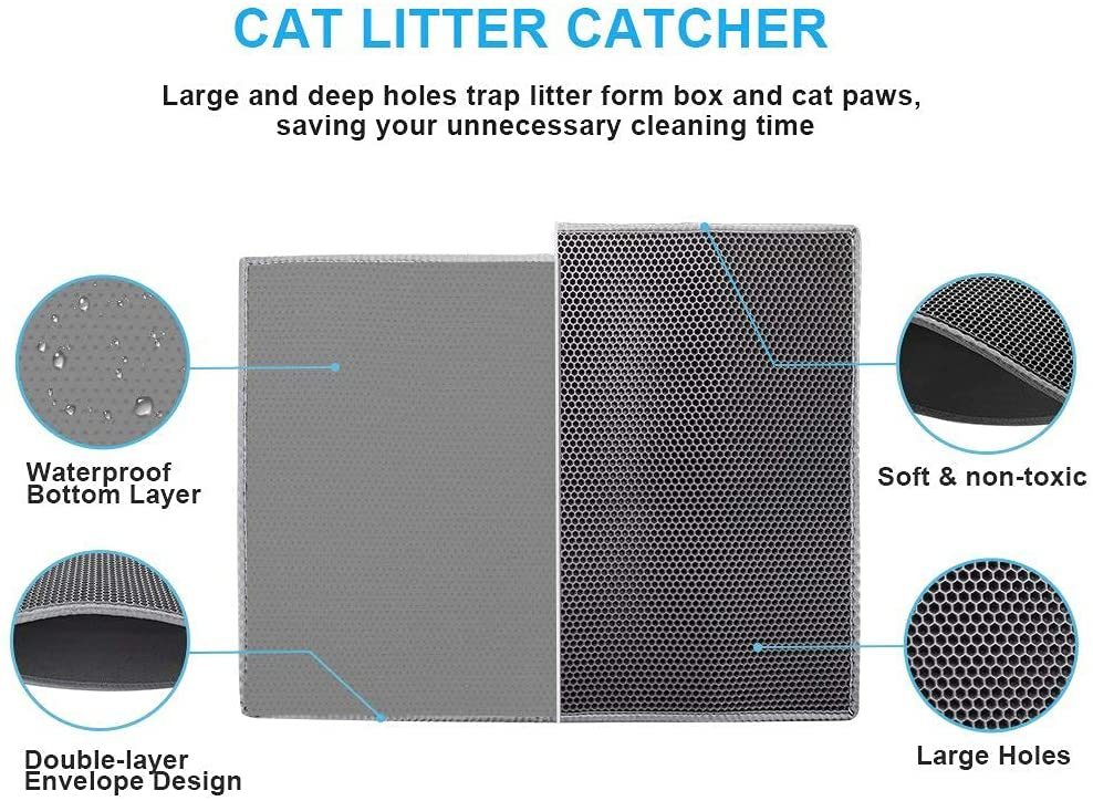 아마존 제조업체 도매 재고 애완동물 EVA 고양이 모래 매트 이중층 세탁 가능 가죽 접이식 고양이 모래 매트