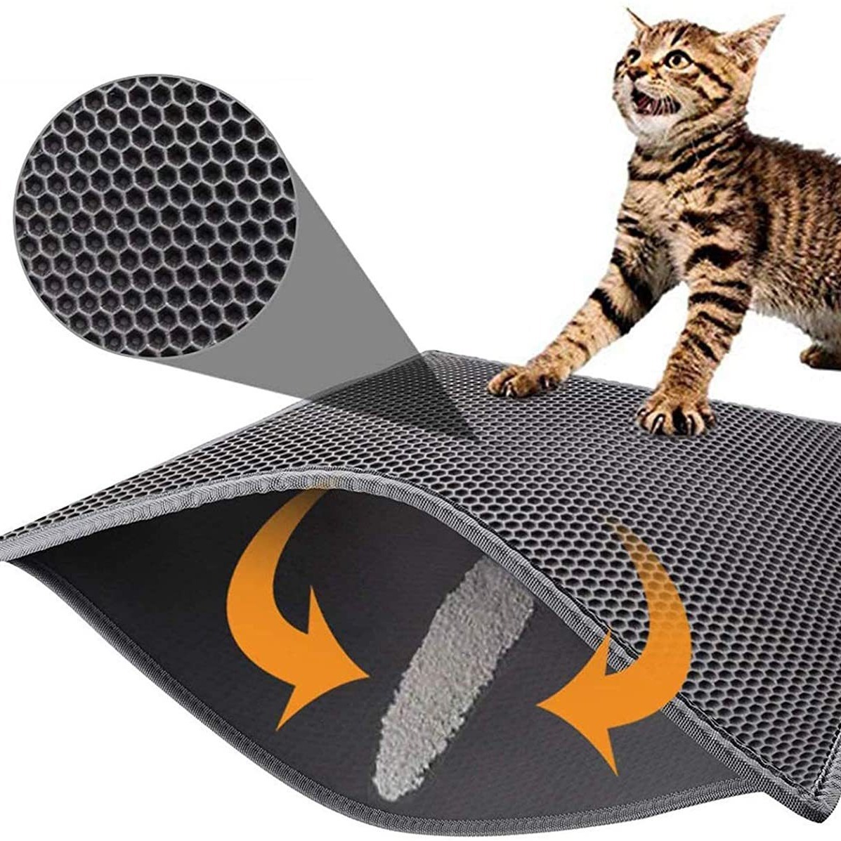 아마존 제조업체 도매 재고 애완동물 EVA 고양이 모래 매트 이중층 세탁 가능 가죽 접이식 고양이 모래 매트스토어 가기
