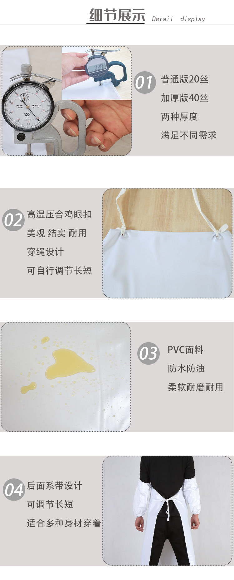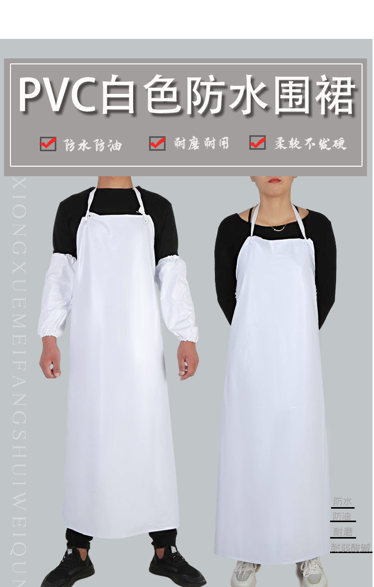 두꺼운 흰색 앞치마 방수 앞치마 내유성 앞치마 PVC 산업용 항산 및 알칼리 앞치마 내마모성 식품 등급 앞치마