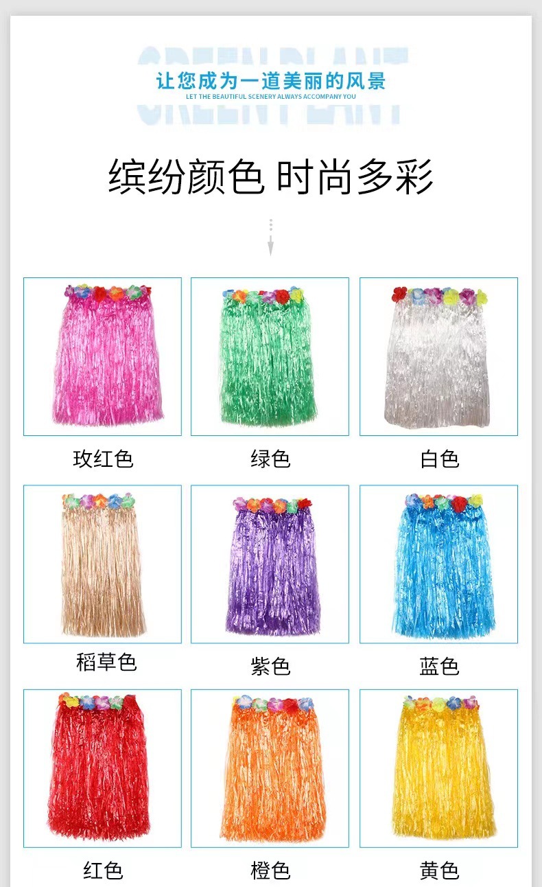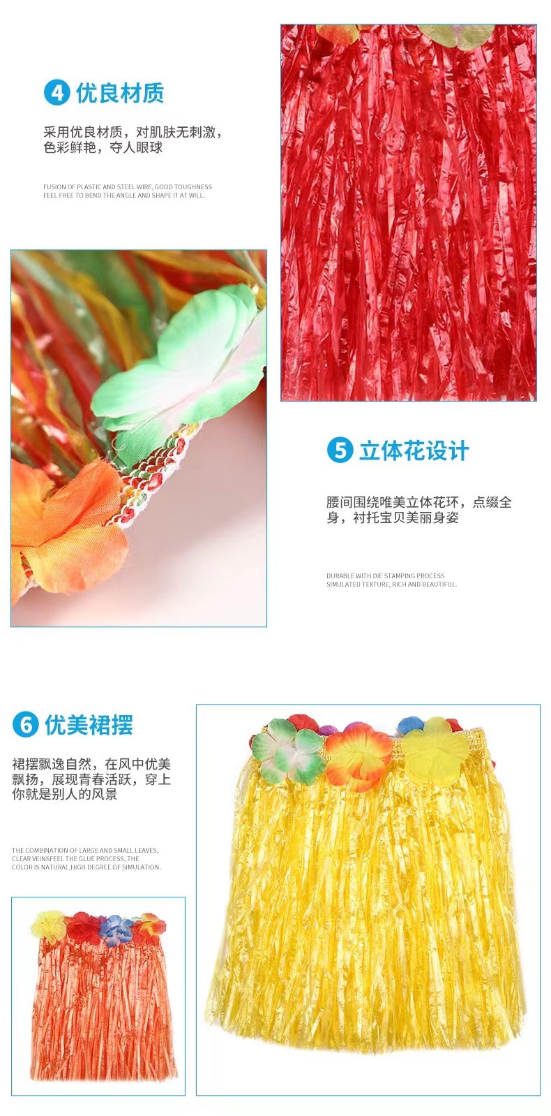공장 도매 하와이 잔디 스커트 탄성 허리 성인 어린이 성능 원피스 잔디 스커트 화환 브라