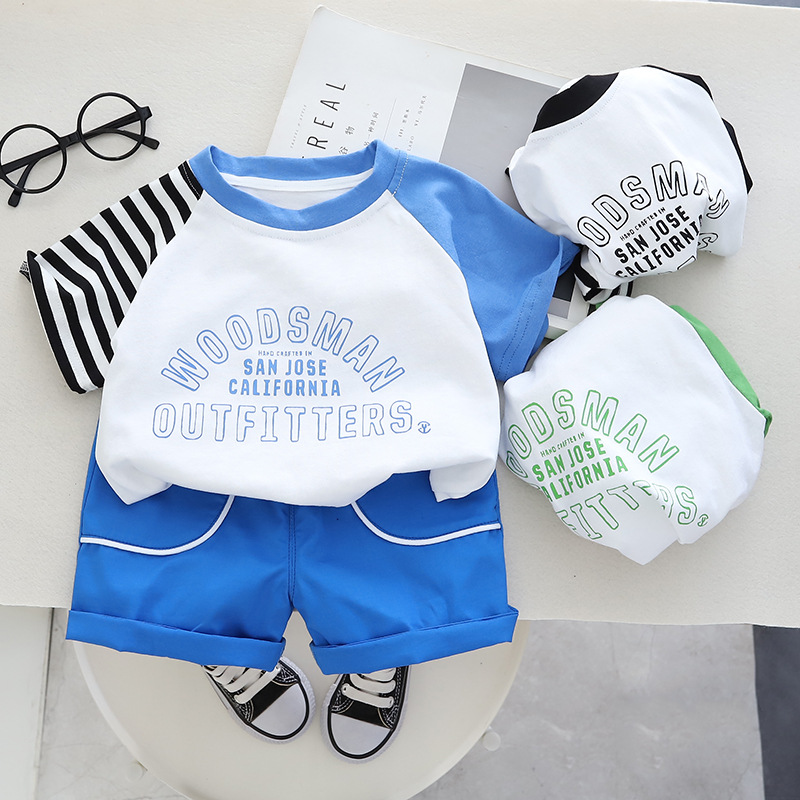 2023 소매 소년 여름 옷 세트 어린이 여름 옷 유아 아동 의류 남성 아기 편지 크루넥 짧은 소매스토어 가기
