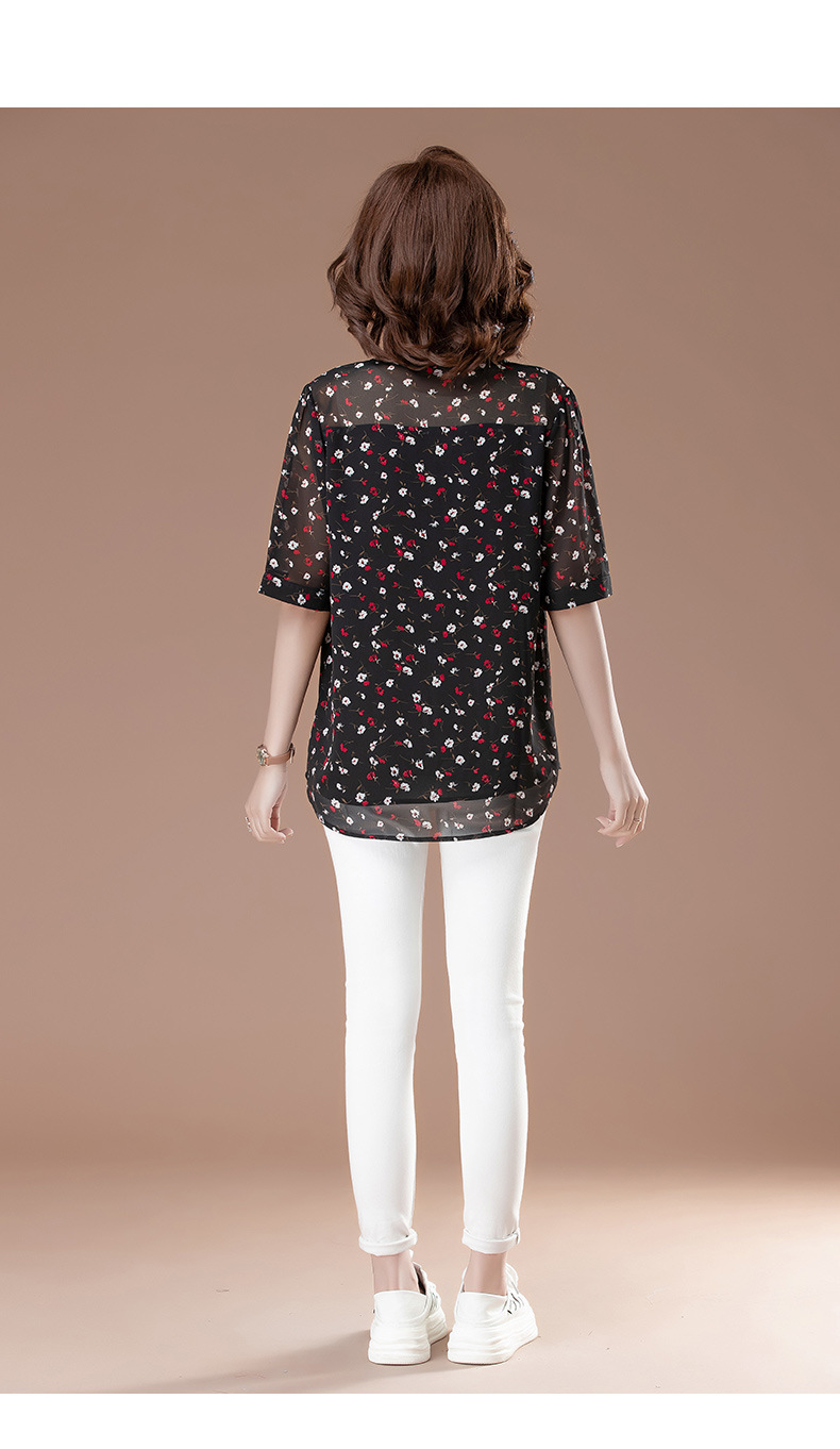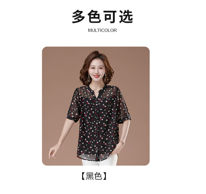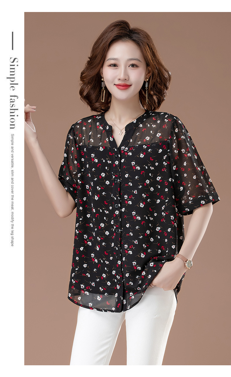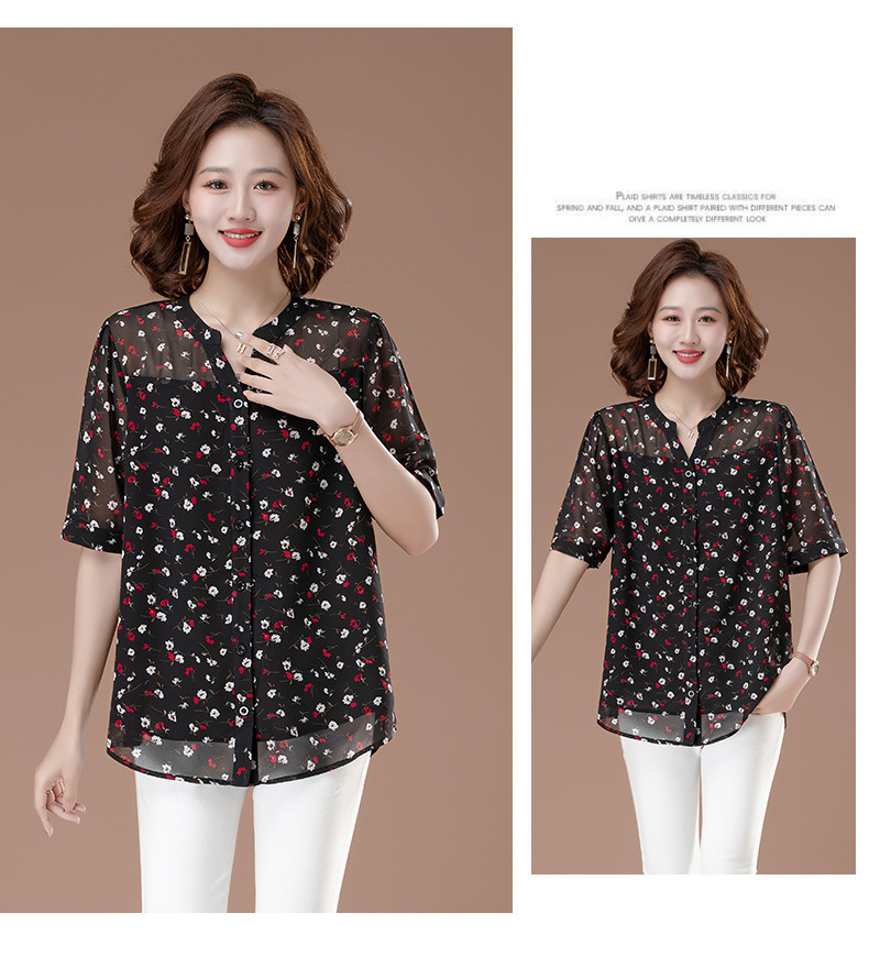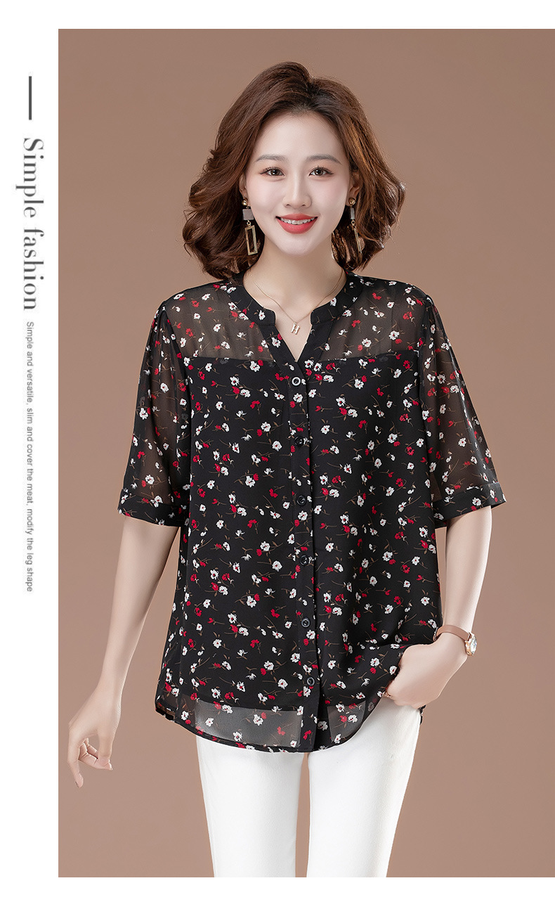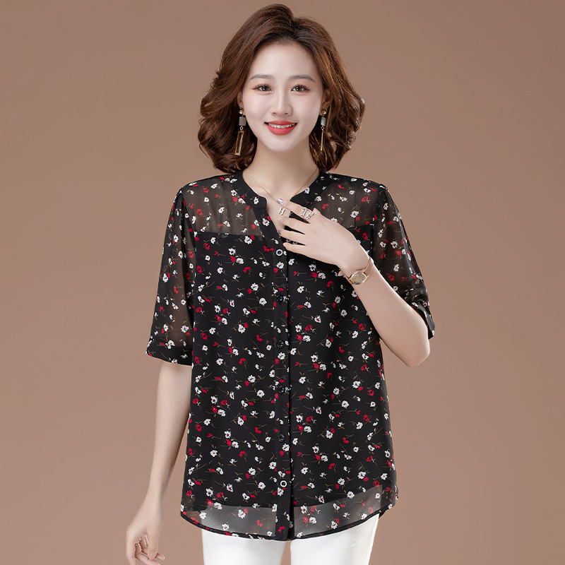 스키니 플로럴 가디건 쉬폰 셔츠 여자의 여름 스키니 플러스 사이즈 셔츠 중년 어머니 배꼽 커버 느슨한 세련된 탑