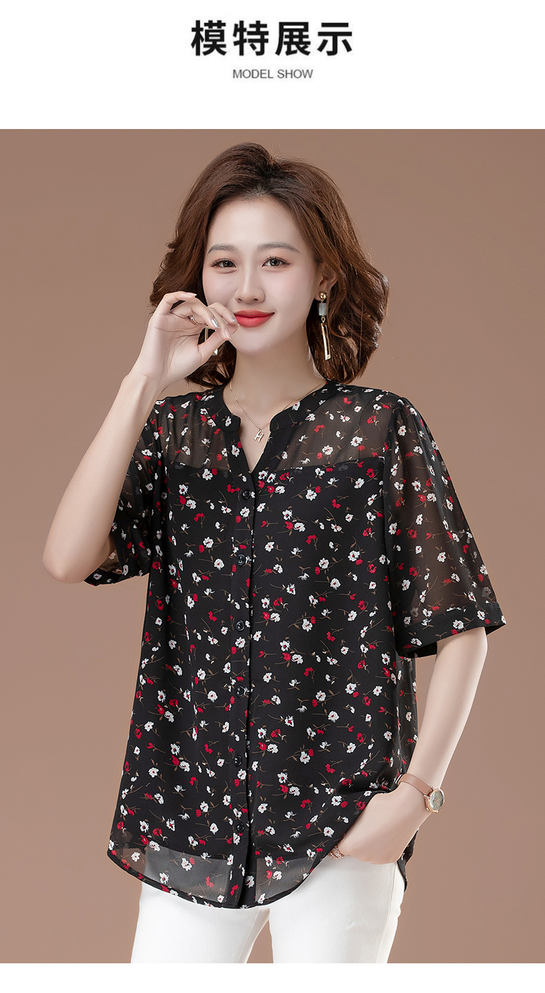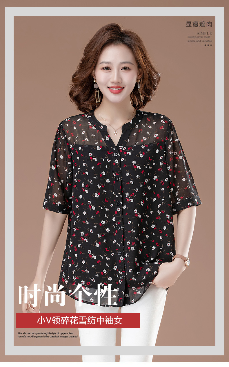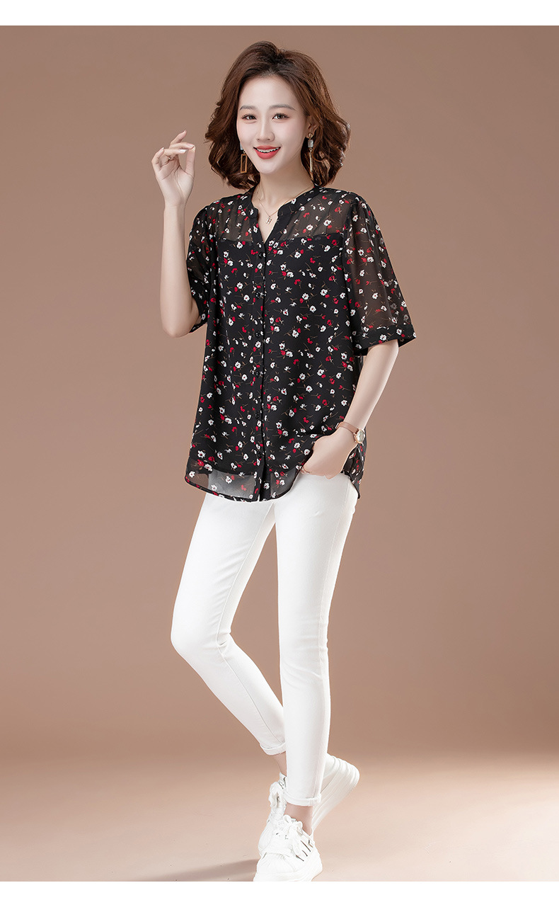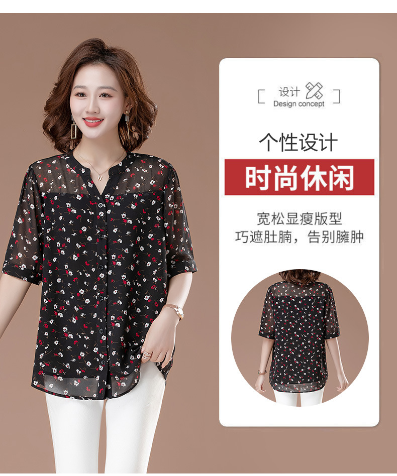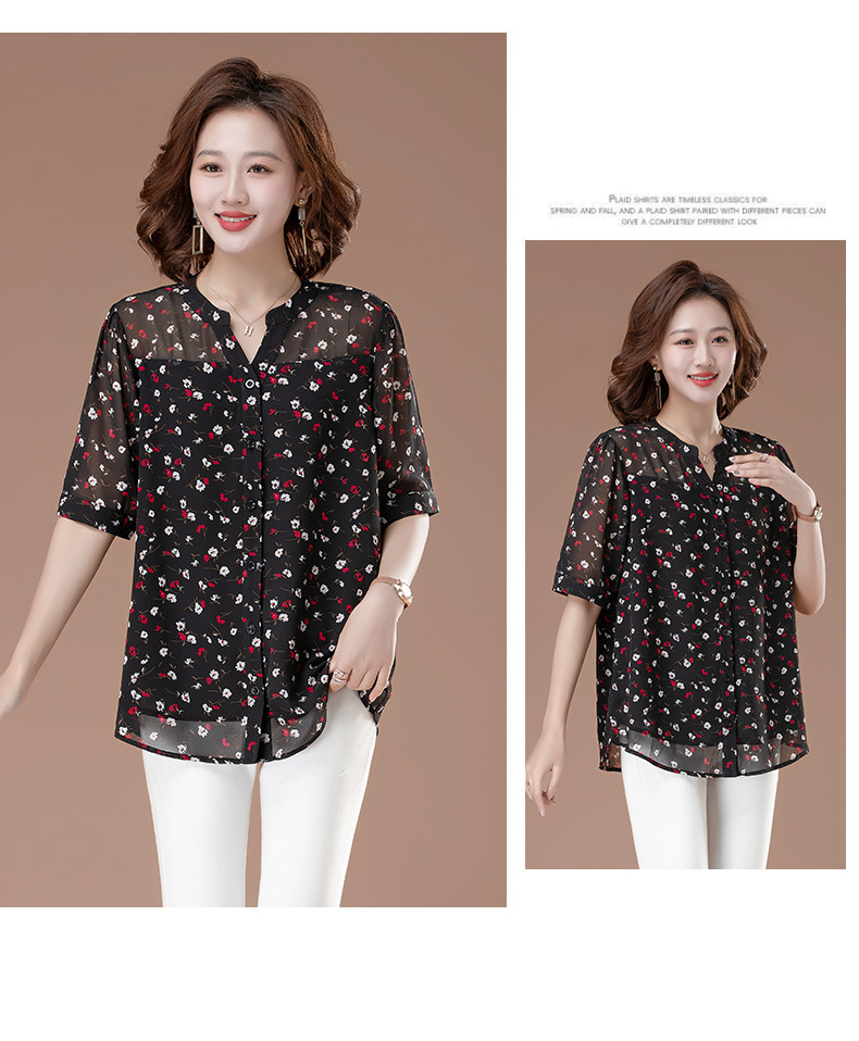스키니 플로럴 가디건 쉬폰 셔츠 여자의 여름 스키니 플러스 사이즈 셔츠 중년 어머니 배꼽 커버 느슨한 세련된 탑