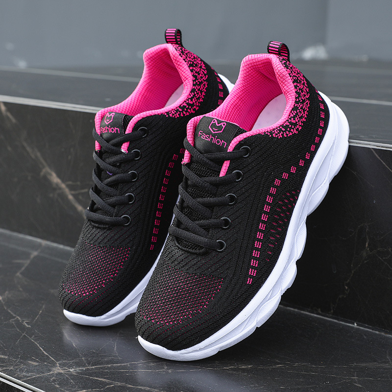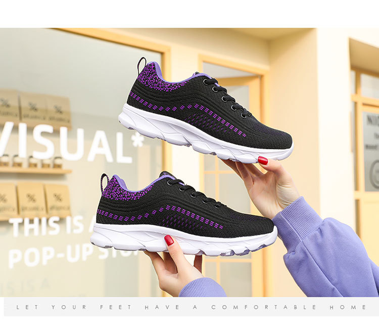 크로스 보더 새로운 캐주얼 패션 여성 신발 통기성 플라잉 짠 플랫 슈즈 여행 신발 슬립온 여성 야외 스포츠스토어 가기
