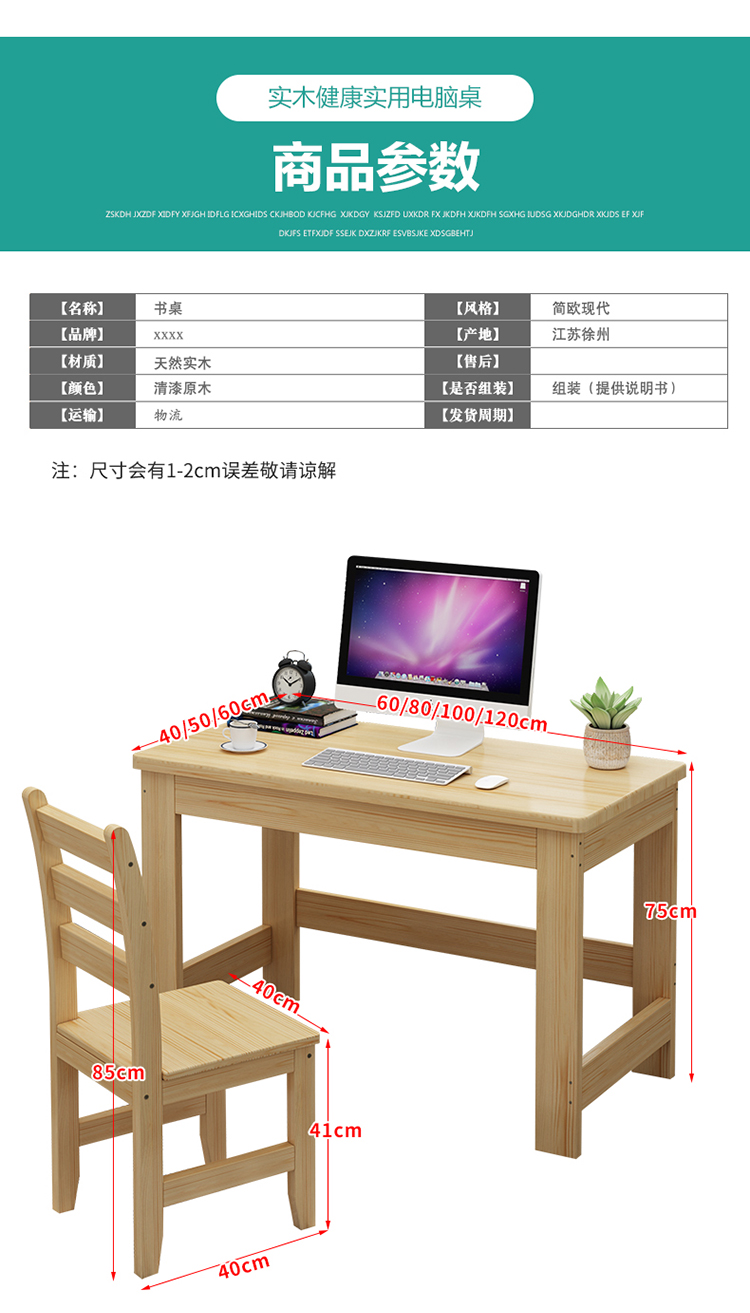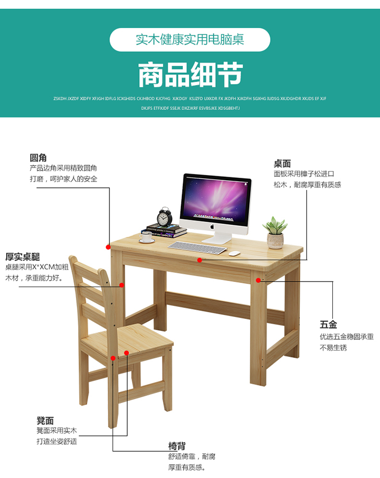 단단한 나무 컴퓨터 책상 어린이 학습 테이블 소나무 책상 홈 사무실 간단한 나무 테이블 현대 침실 테이블