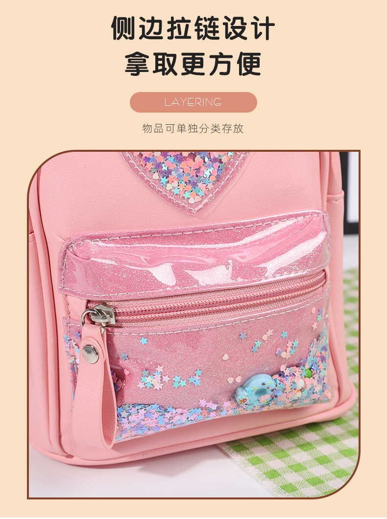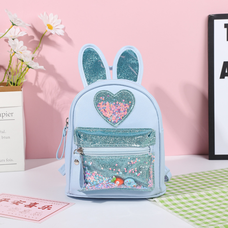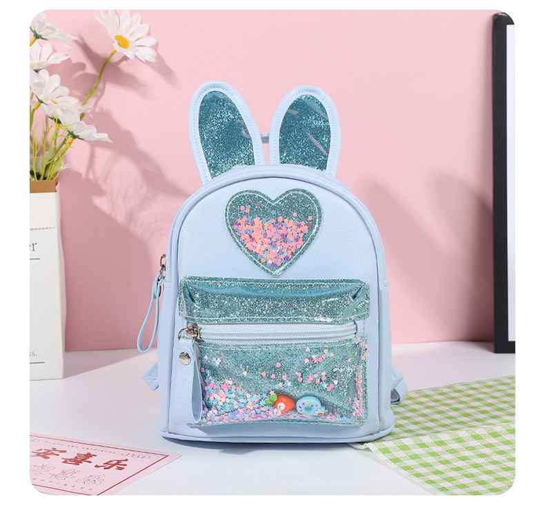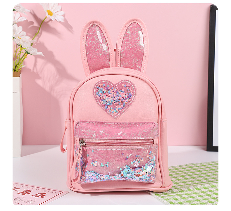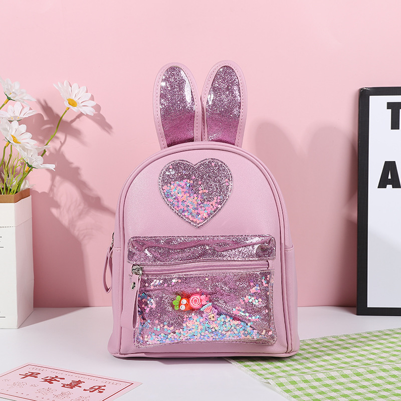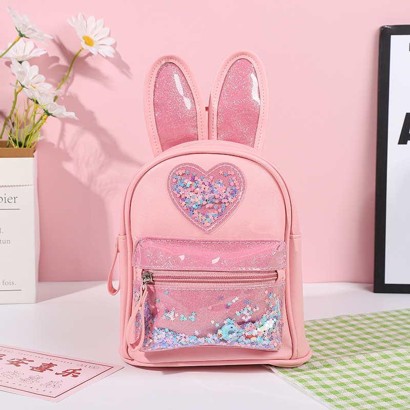 핑크색 어린이 책가방, 패셔너블한 스팽글 토끼 백팩, 여행용 만화 유치원 가방, 여아용, 재고 있음