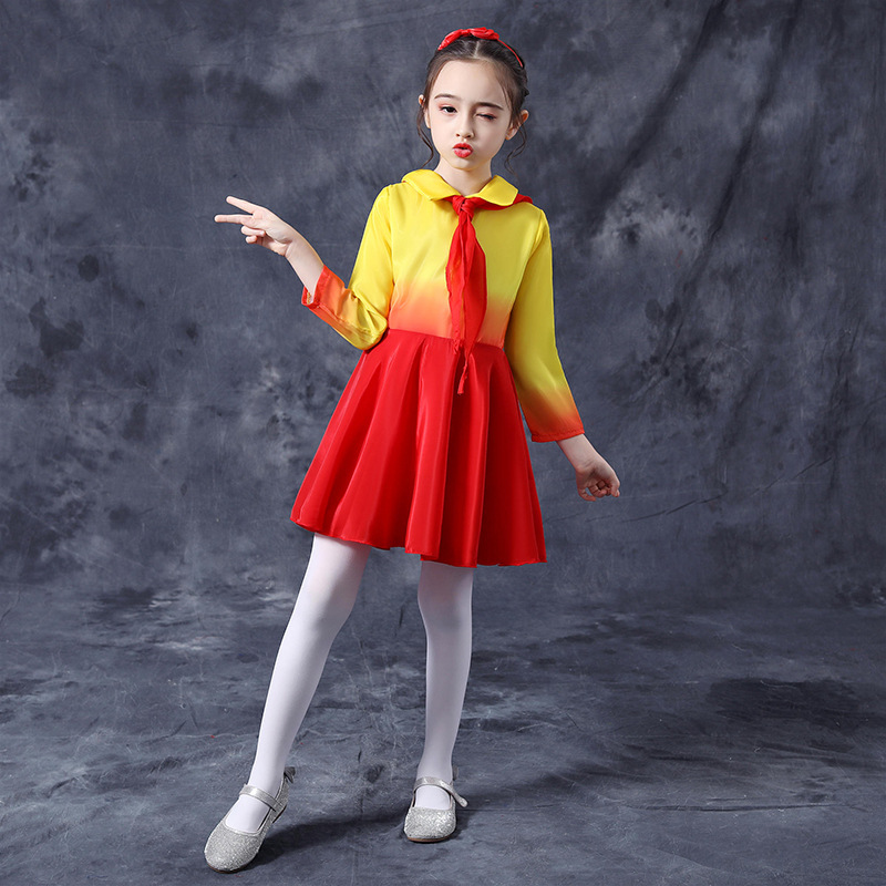 나는 빨간 스카프 합창 의류 젊은 개척자 붉은 노래 공연 의류 중국 꿈 어린이 시 낭송 공연 의류스토어 가기