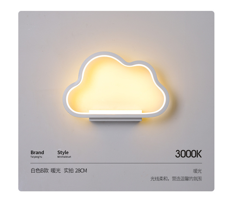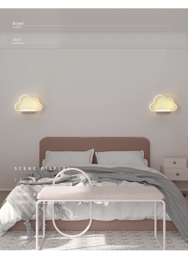 북유럽 침실 침대 옆 벽 램프 배경 벽 장식 현대 간단한 따뜻한 인터넷 연예인 어린이 구름 주도 벽 램프