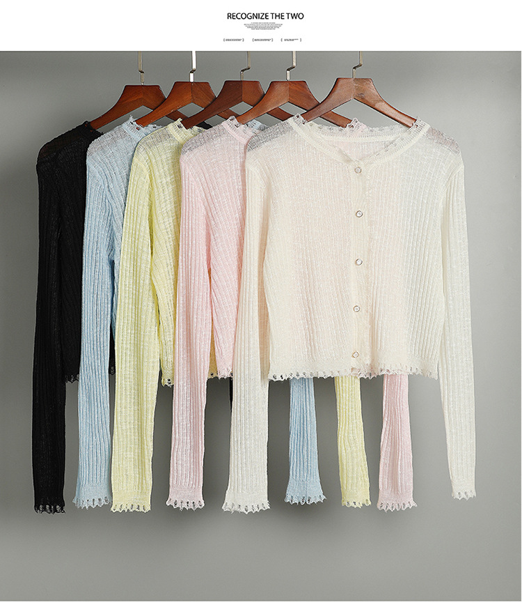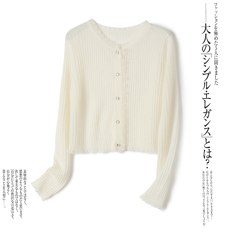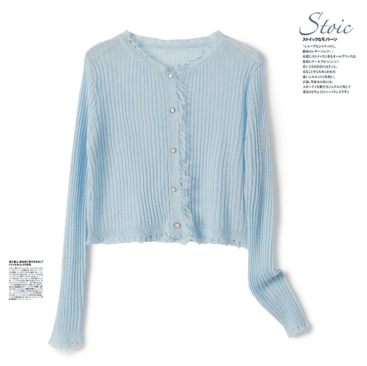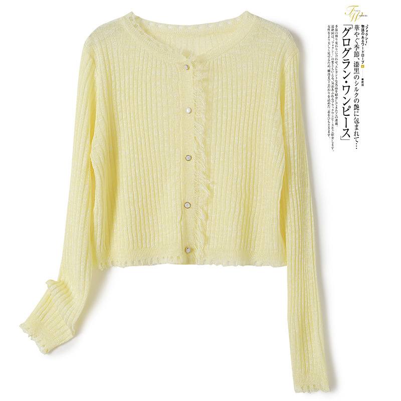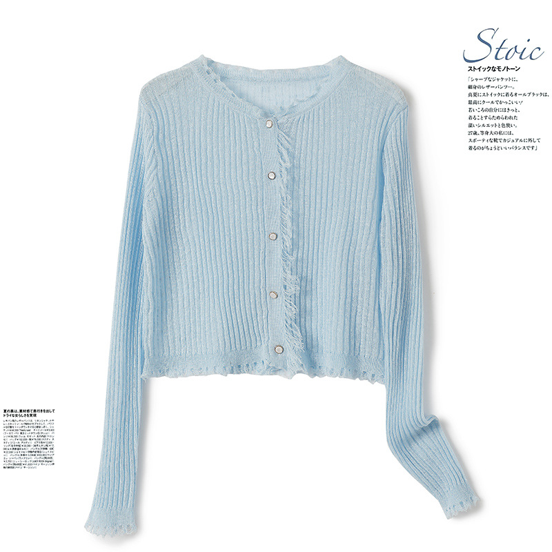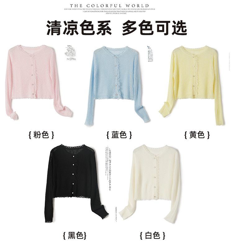 자외선 차단제 니트 가디건 여성용 2023 여름 신제품 초박형 긴팔 아웃웨어 블라우스 짧은 배꼽 노출 에어컨 셔츠스토어 가기