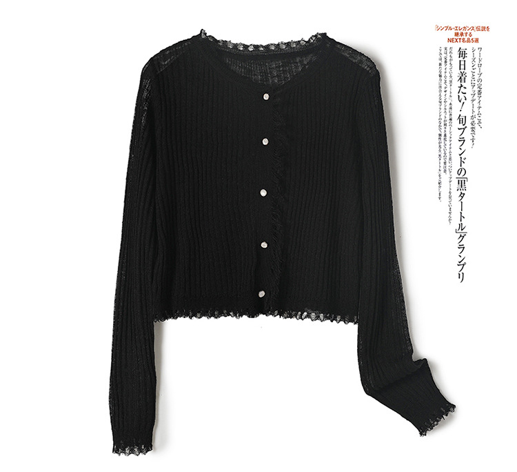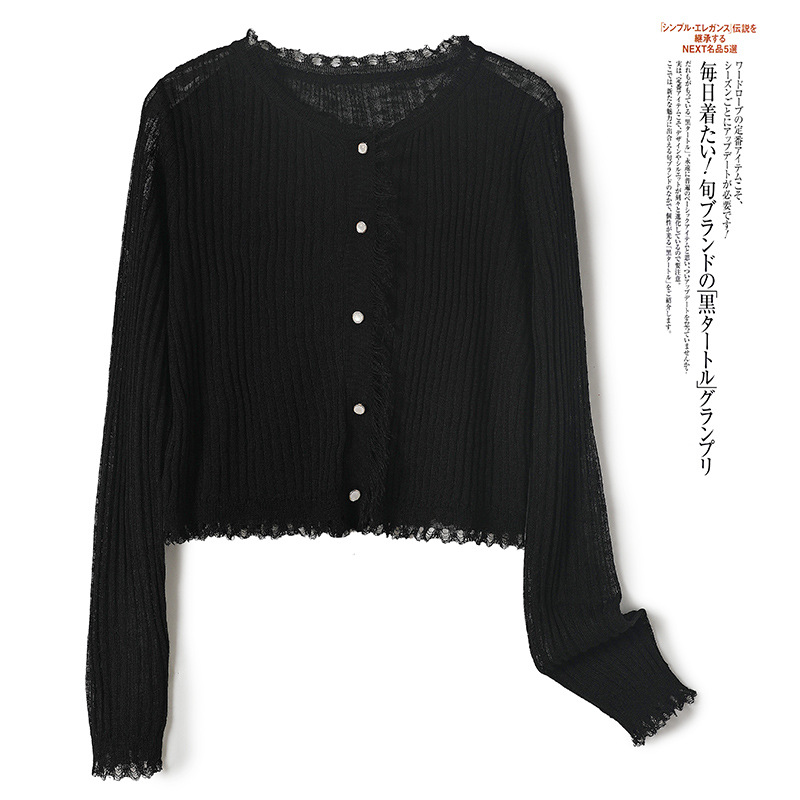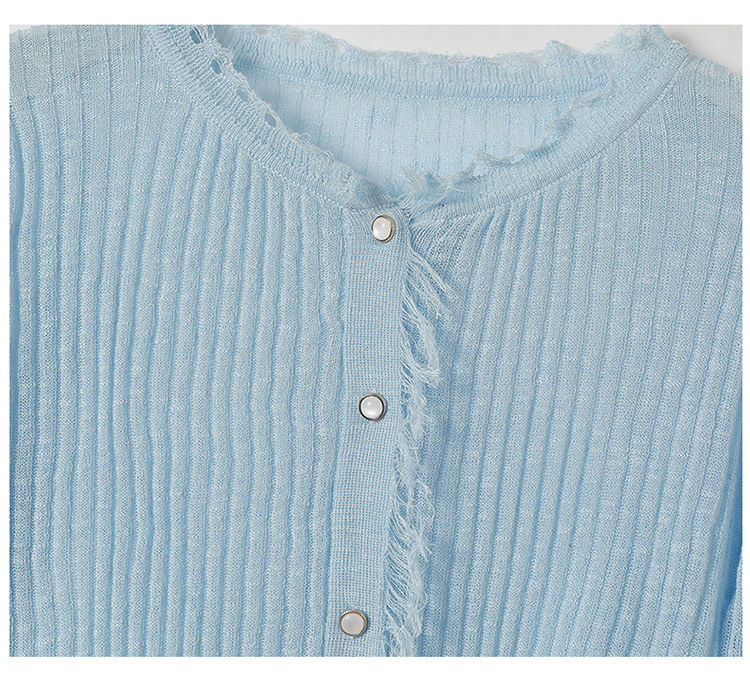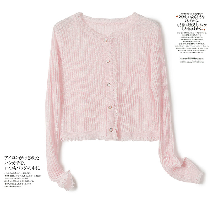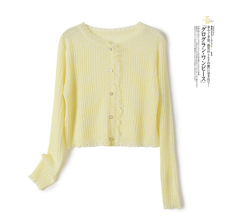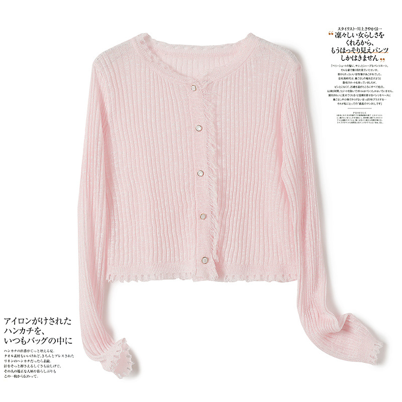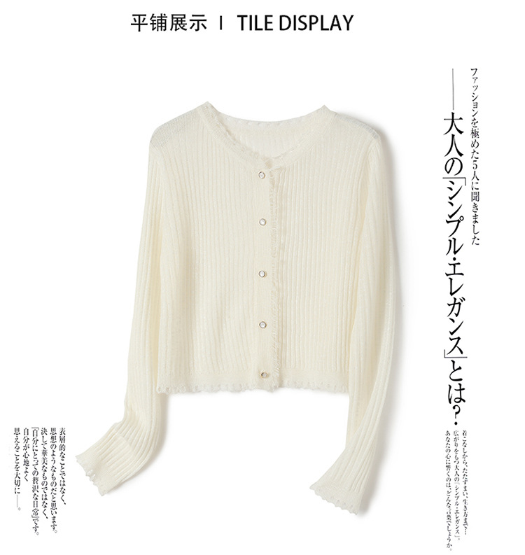 자외선 차단제 니트 가디건 여성용 2023 여름 신제품 초박형 긴팔 아웃웨어 블라우스 짧은 배꼽 노출 에어컨 셔츠스토어 가기