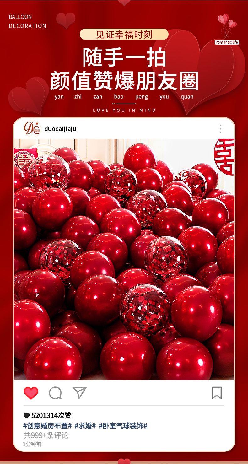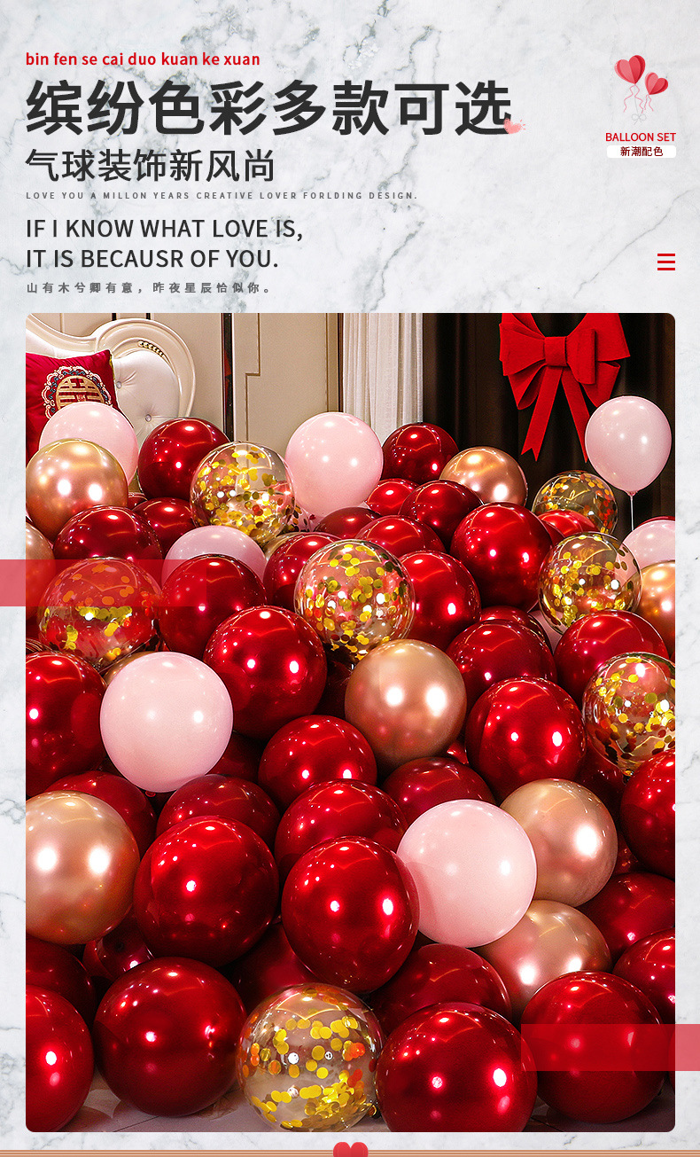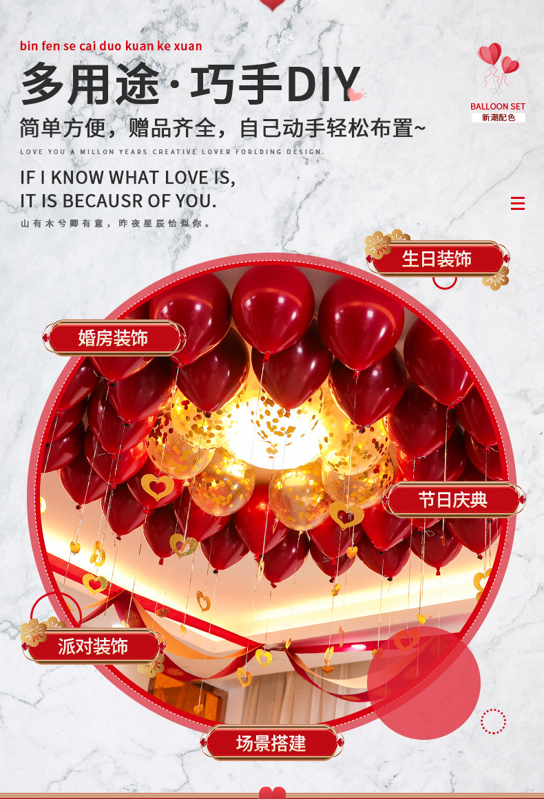 웨딩 풍선 빨간 여자 웨딩 룸 행복한 단어 장식 웨딩 거실 약혼 장면 레이아웃 웨딩 용품