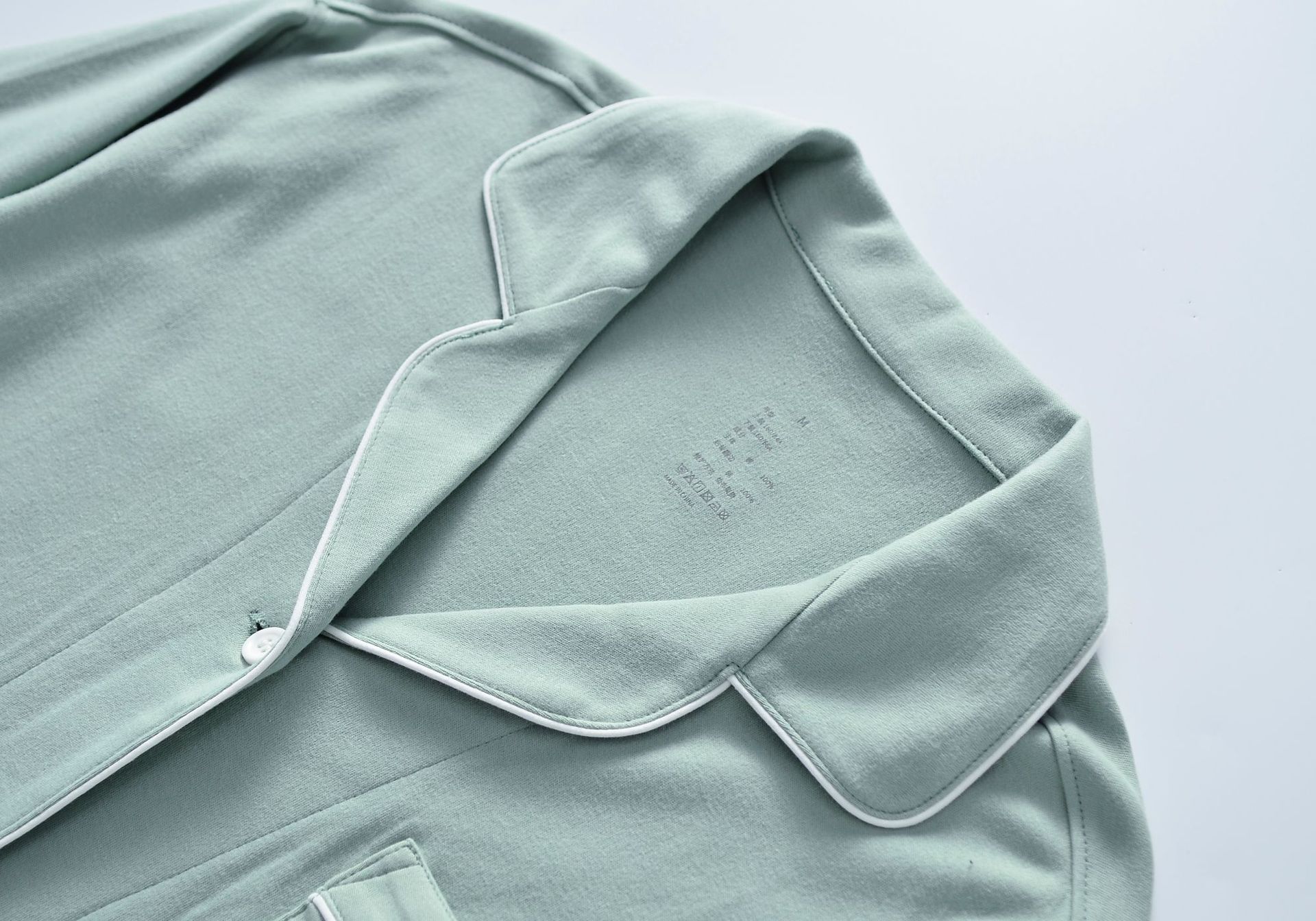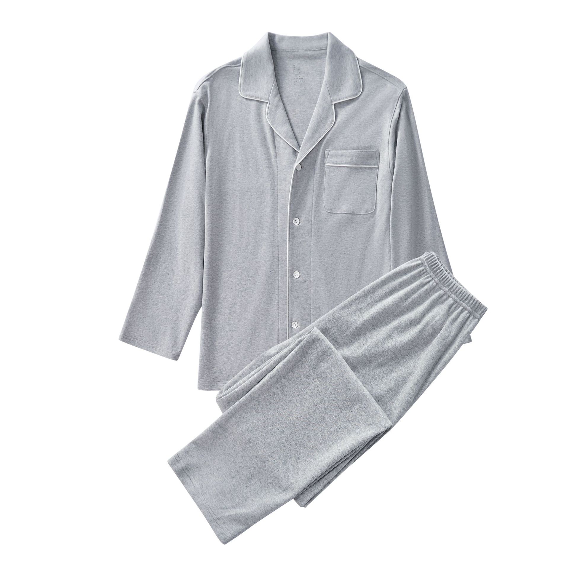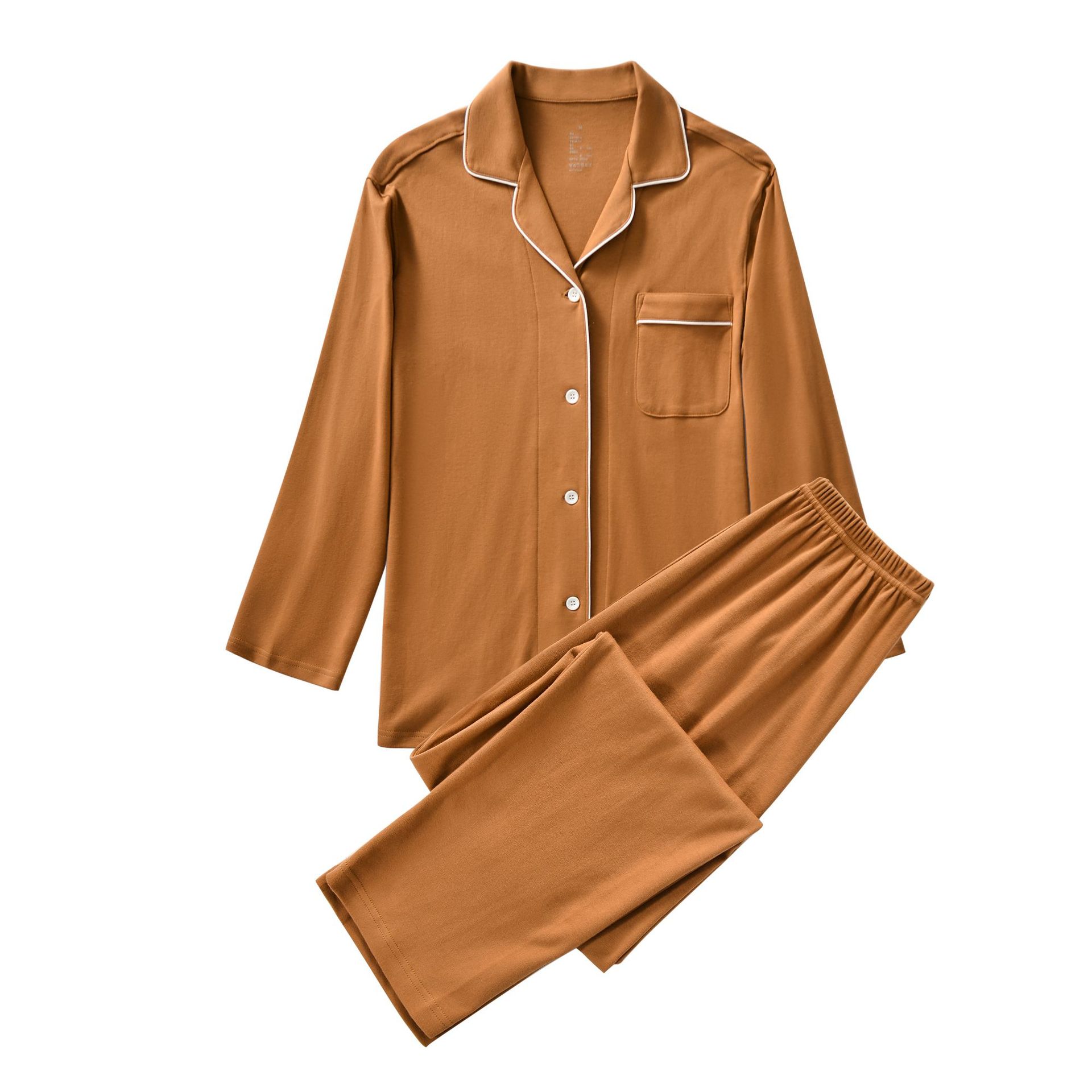 새로운 일본식 비 인쇄 홈웨어 Tianzhu 코튼 파자마 니트 코튼 홈 착용 코튼 단색 남성과 여성의 긴팔 바지스토어 가기