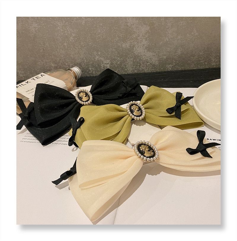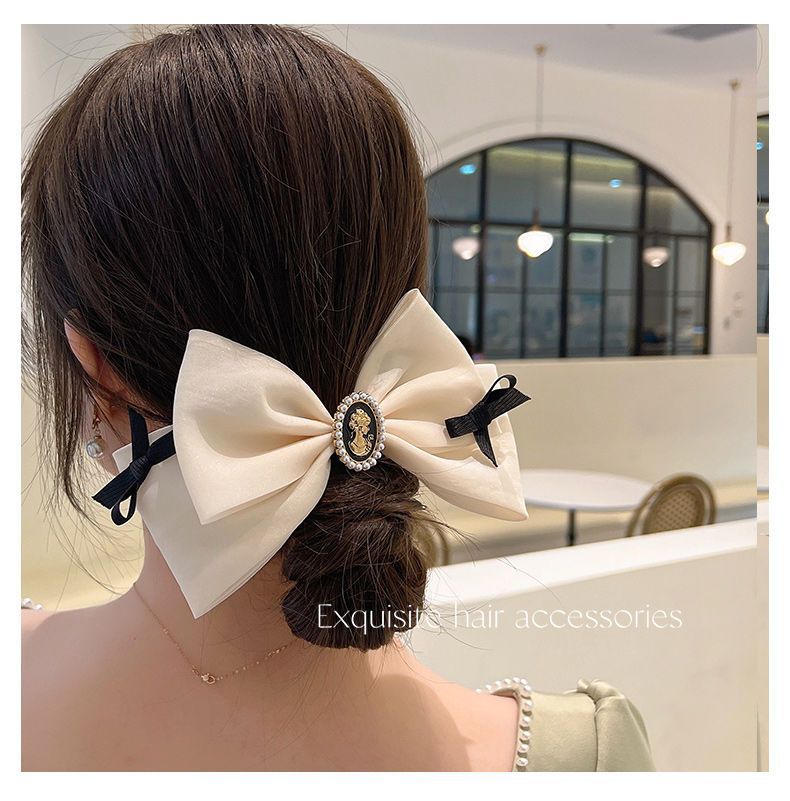 2023 봄과 여름 새로운 활 머리핀 여성 한국 스타일 신선한 탑 클립 간단한 우아한 진주 봄 클립 헤드웨어스토어 가기