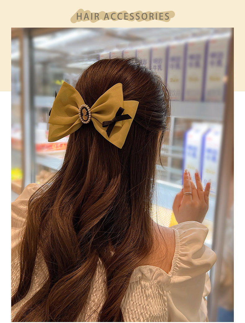 2023 봄과 여름 새로운 활 머리핀 여성 한국 스타일 신선한 탑 클립 간단한 우아한 진주 봄 클립 헤드웨어