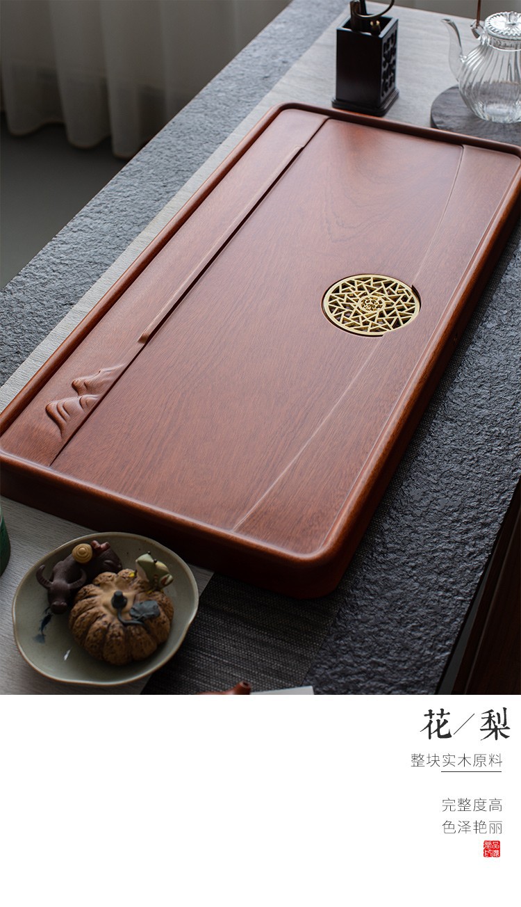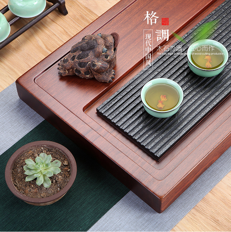 전체 조각 로즈 우드 티 트레이 솔리드 우드 티 트레이 티 트레이 스톤 블랙 스톤 티 테이블 쿵푸 차 세트스토어 가기