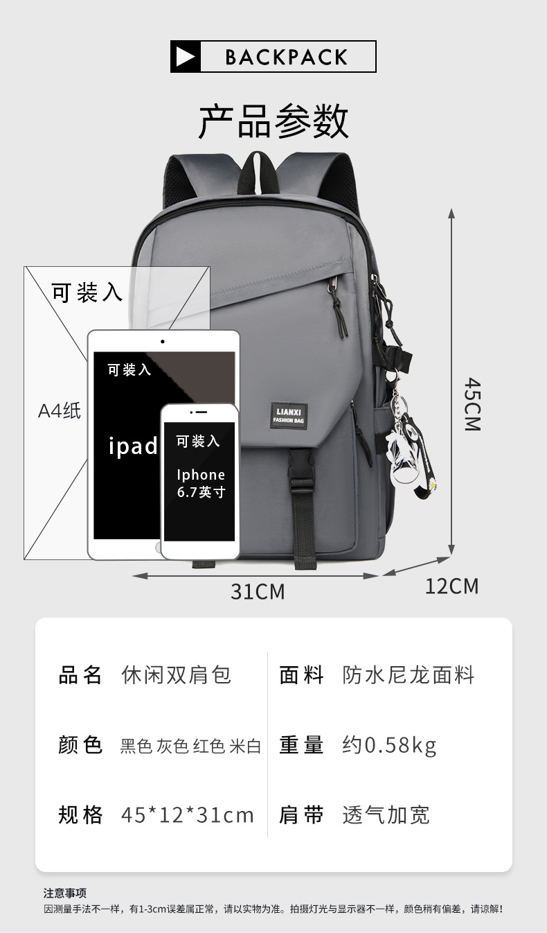 책가방 남자 대학생 데일리 여행 백팩 남성용 백팩 여성용 한국식 심플 만능 여행 컴퓨터 가방스토어 가기