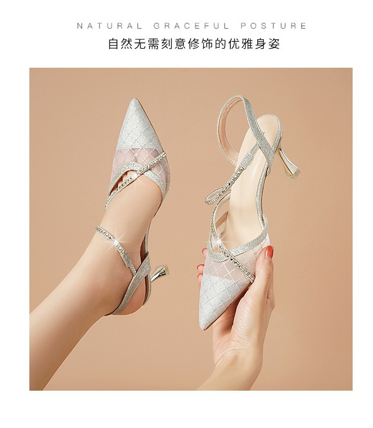 여성을위한 Baotou 샌들 여름 2024 새로운 스타일 뾰족한 섹시한 라인 석 중공 얇은 힐 하이힐 여름 스커트