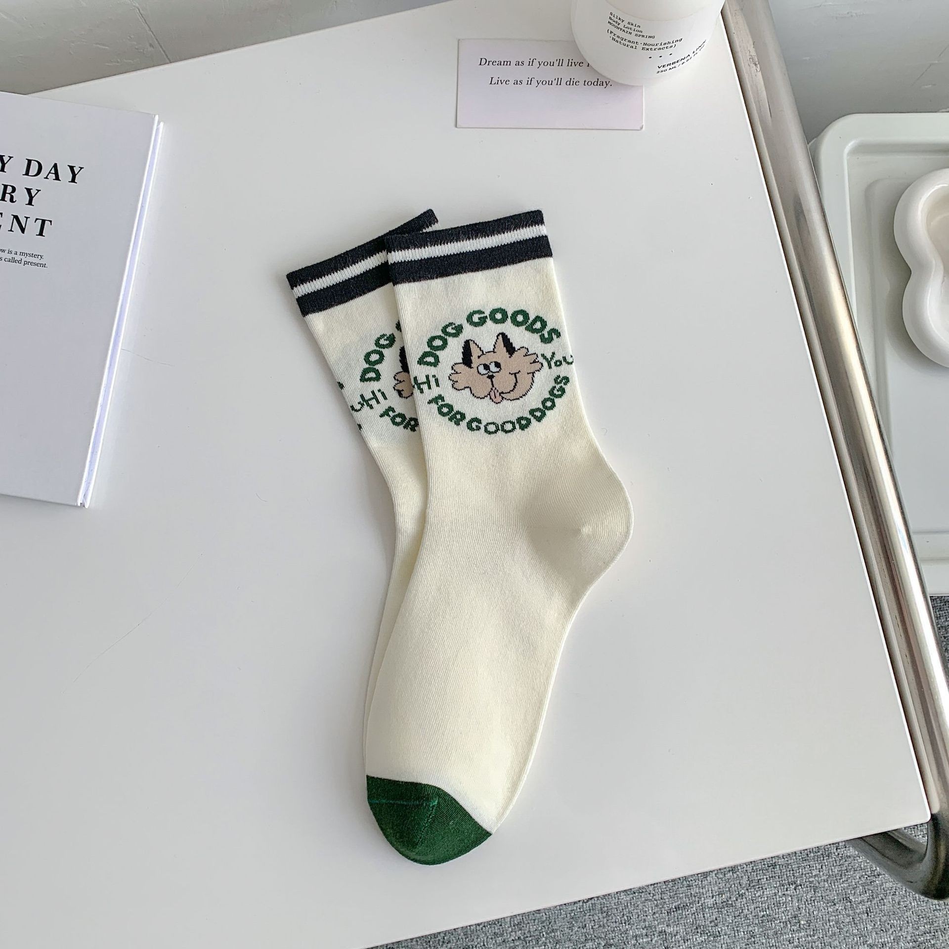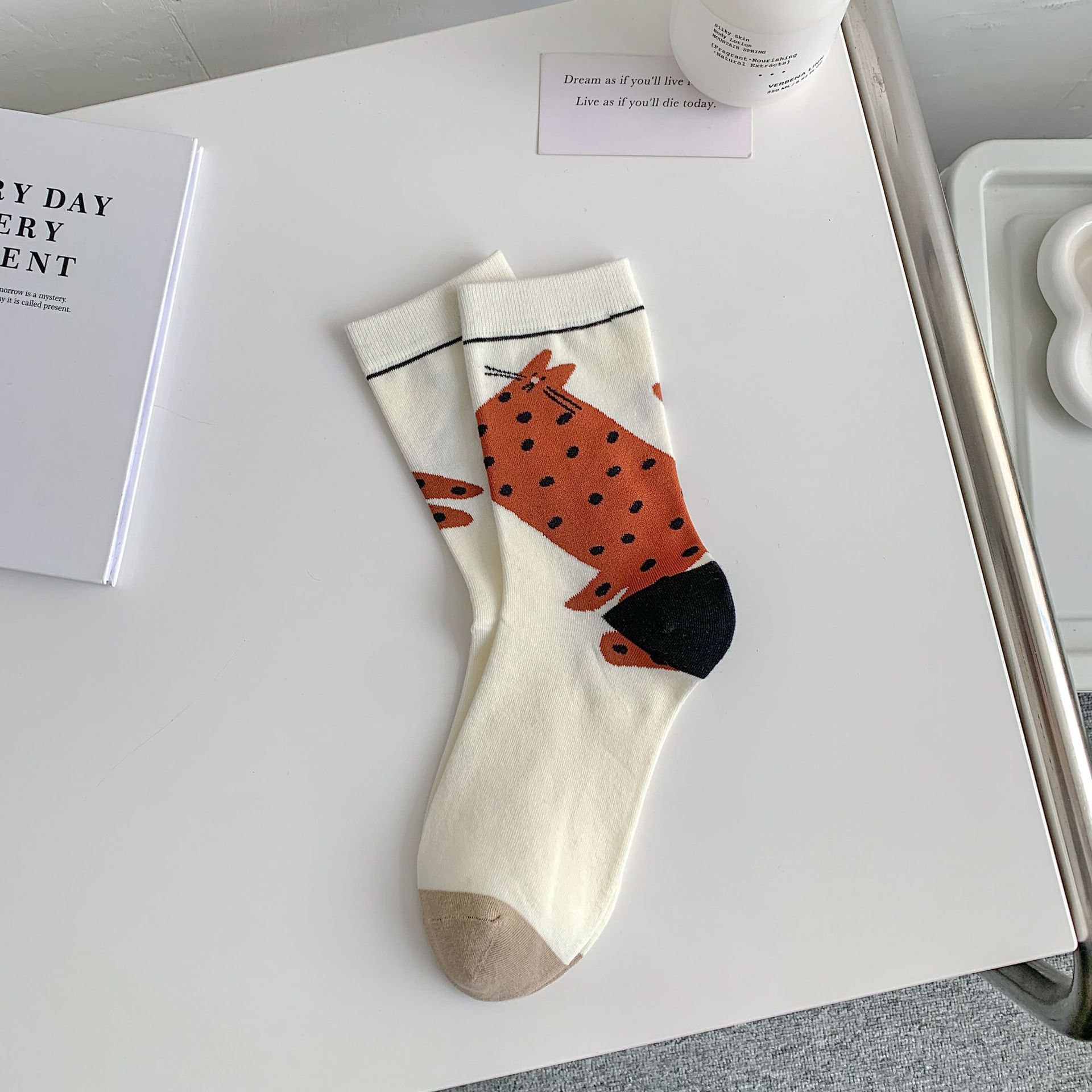 2023 봄과 여름 새로운 중간 길이 양말 통기성 유행 여성 양말 얇은 어린이 낙서 만화