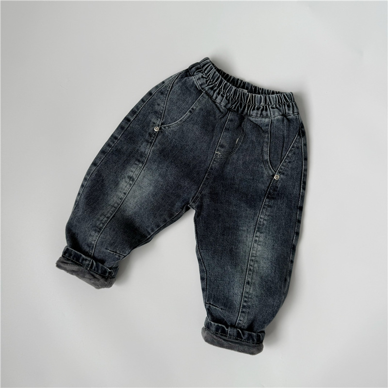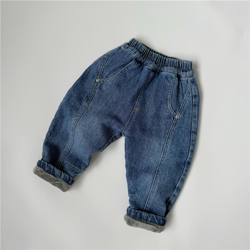 GL-kids 한국식 겨울 어린이 기모 두꺼운 면 데님 Hallen 바지 아기 소년과 소녀를 위한 모든 매치 당근 바지스토어 가기