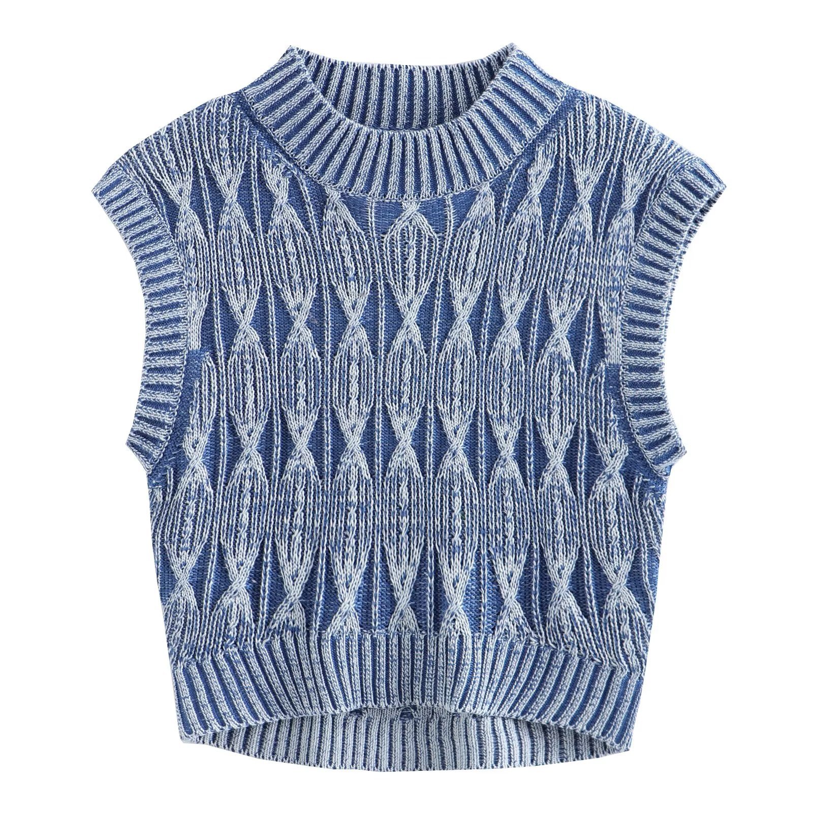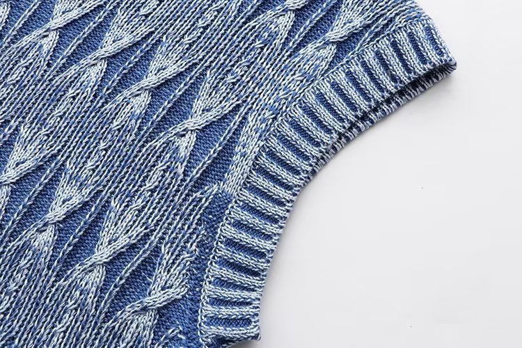 대외 무역 2023 새로운 여성 의류 씻어 올드 효과 짧은 니트 스웨터 조끼 조끼 탑 6NS031