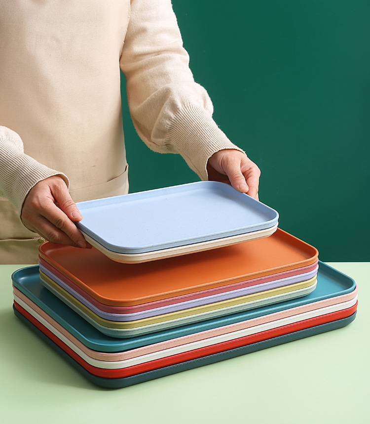 밀 밀짚 과일 샐러드 트레이 직사각형 디저트 과일 트레이 차 세트 바베큐 튀김 끈 대용량 트레이