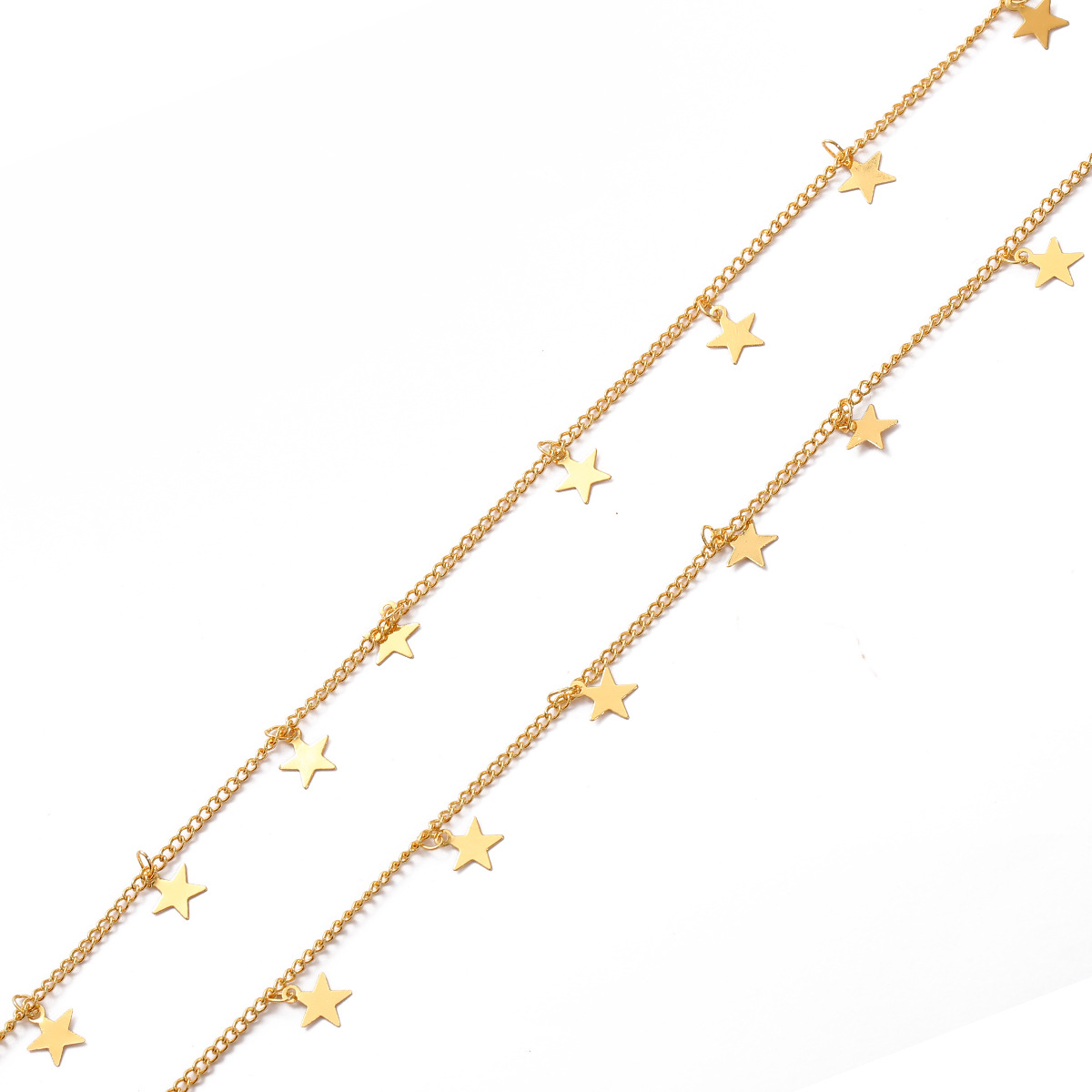 • 매달린 다섯개의 별 체인 폭 2mm 다섯개 별 폭 8mm 매달려 도금 18K 금 50cm/스트립