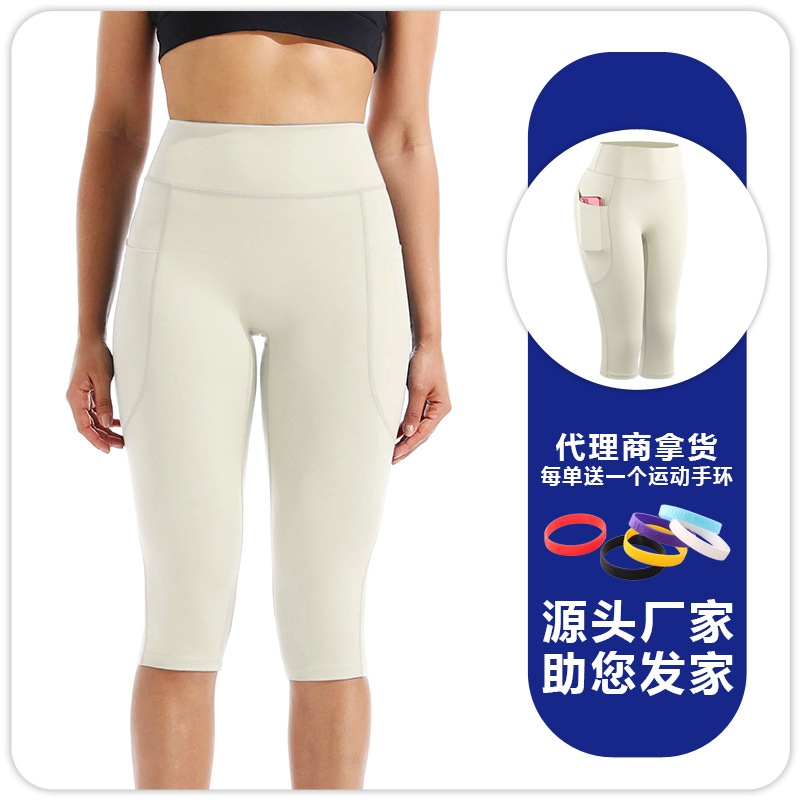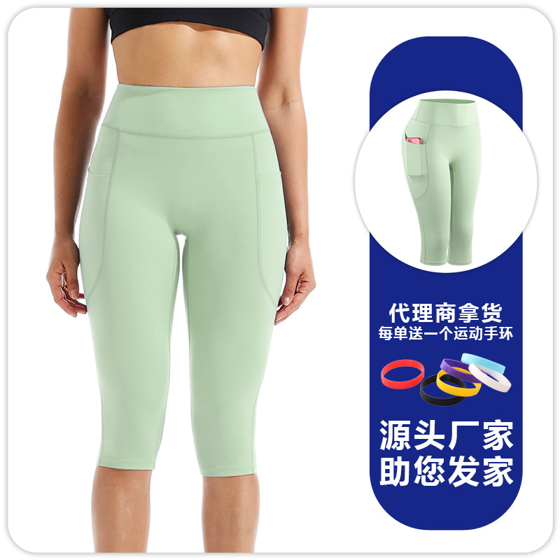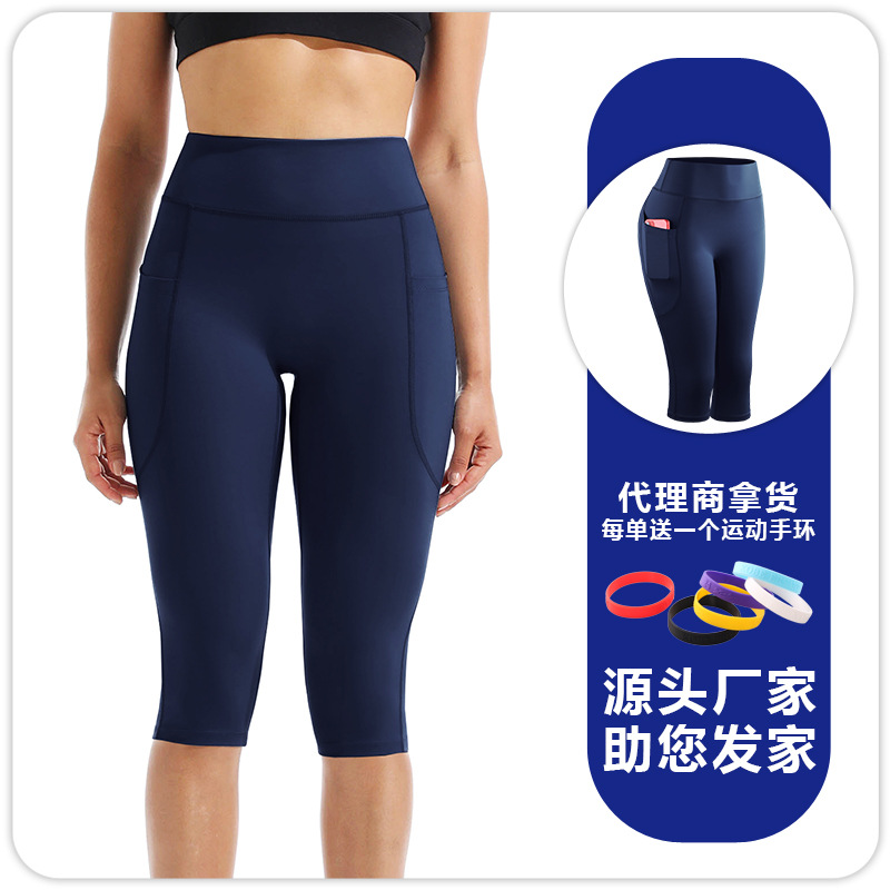 F9120 높은 허리 엉덩이 리프팅 피트니스 바지 여자 스포츠 복부 승마 마라톤 타이트 바지 복숭아 엉덩이 요가 7 점 바지