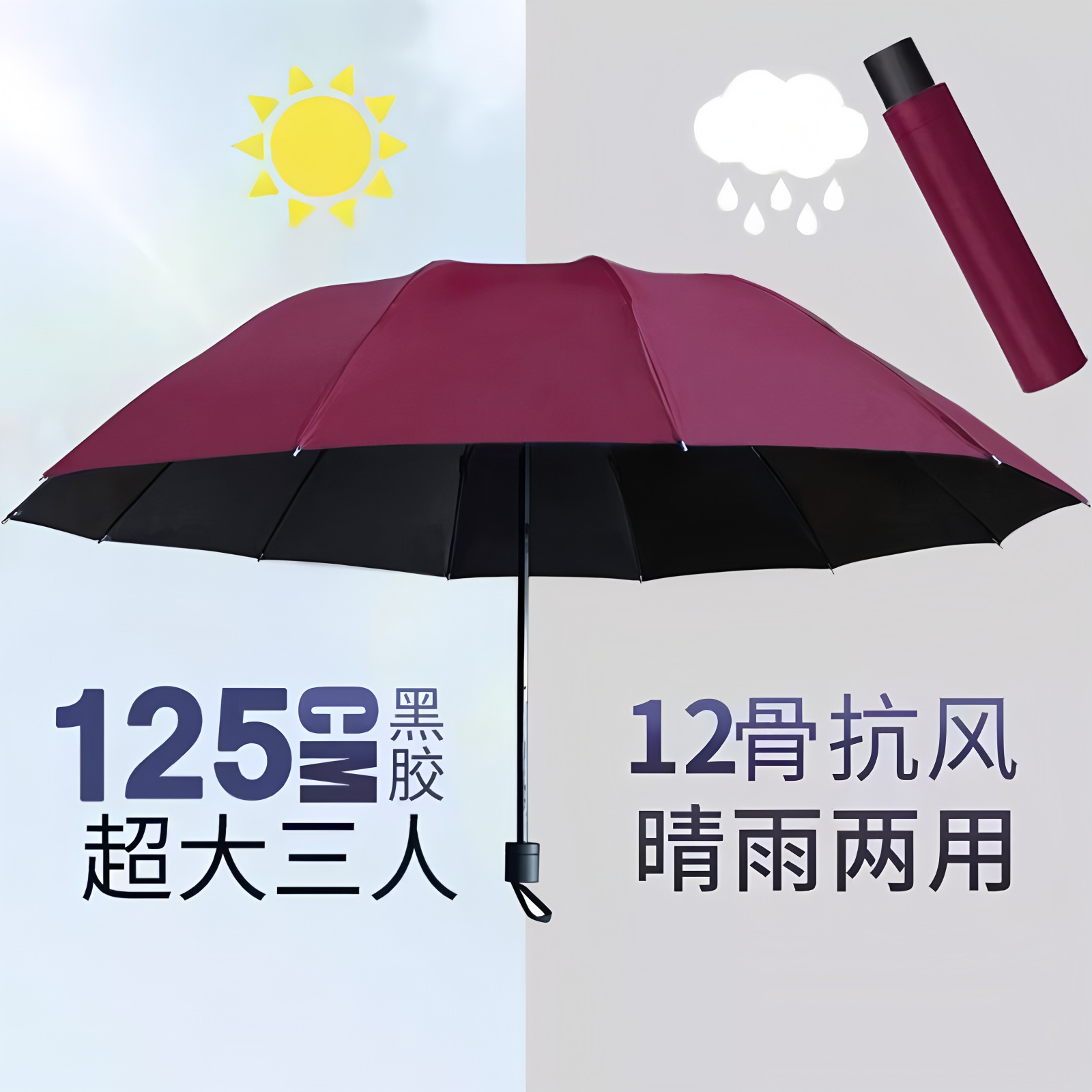 • [수동] 12본 특대형 - 버건디 [3인 모델 126CM]