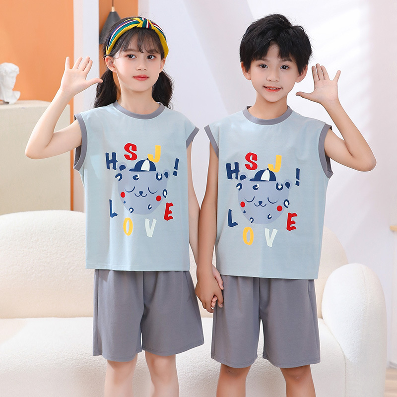 어린이 조끼 세트 여름 조끼 Tencel 면 소형 및 중형 어린이 느슨한 민소매 짧은 T Lyocell 카테고리 A New