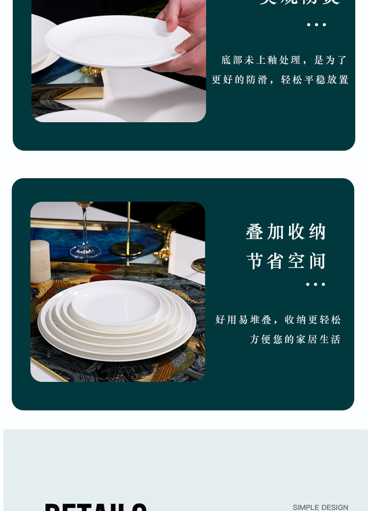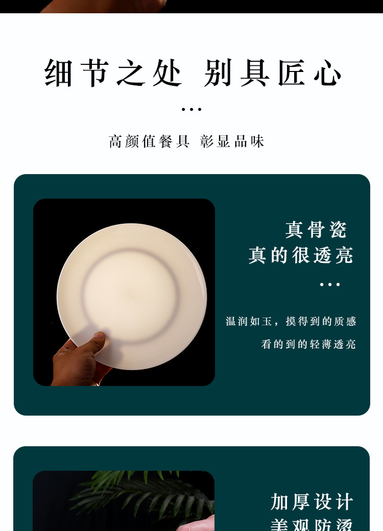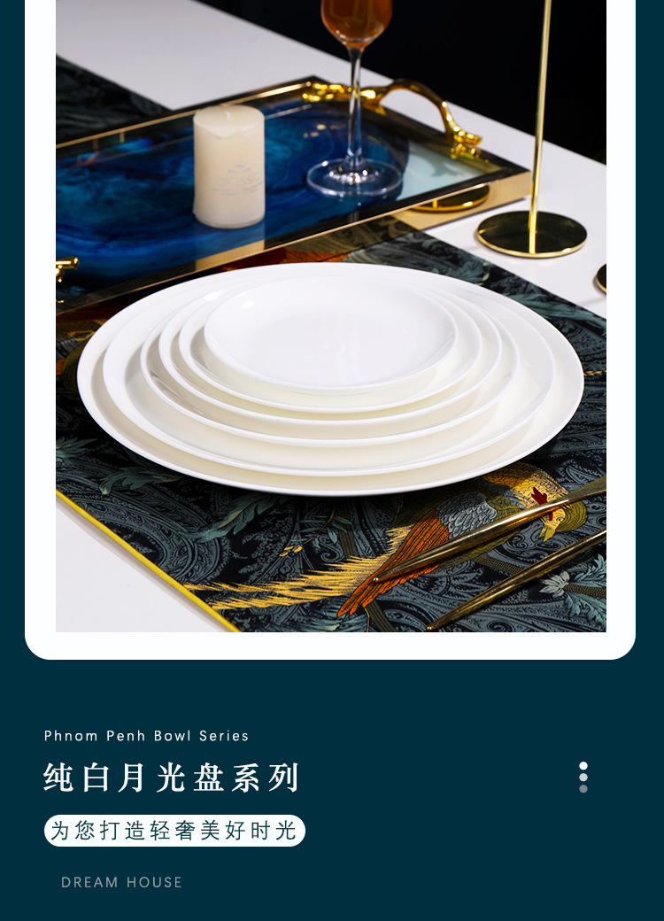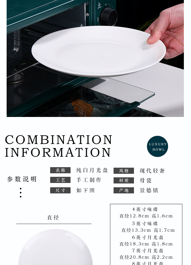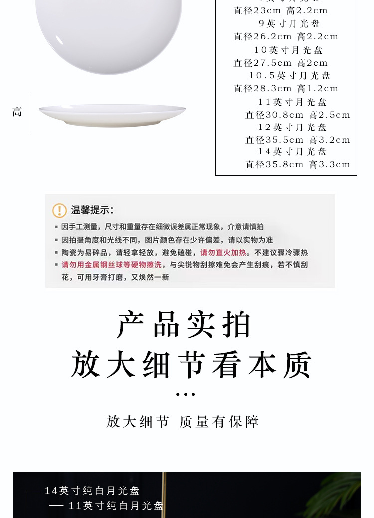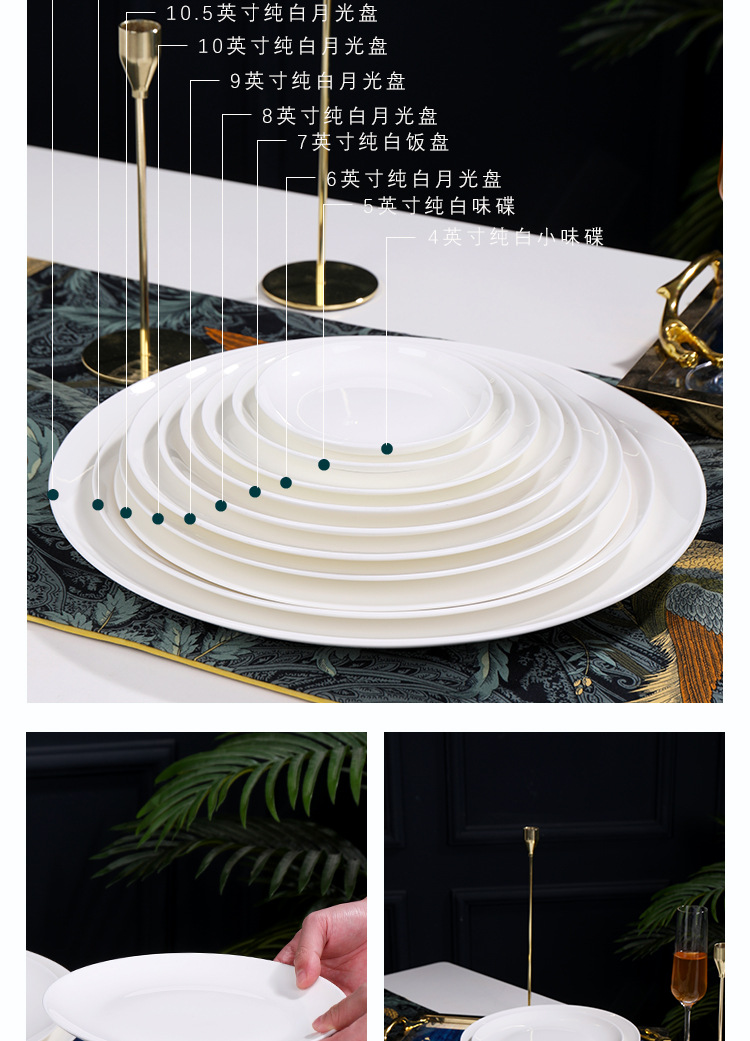Jingdezhen 순백본 중국 접시 접시 가정 달빛 접시 크기 스테이크 식사 서양 음식 플랫 플레이트 세라믹 식기스토어 가기