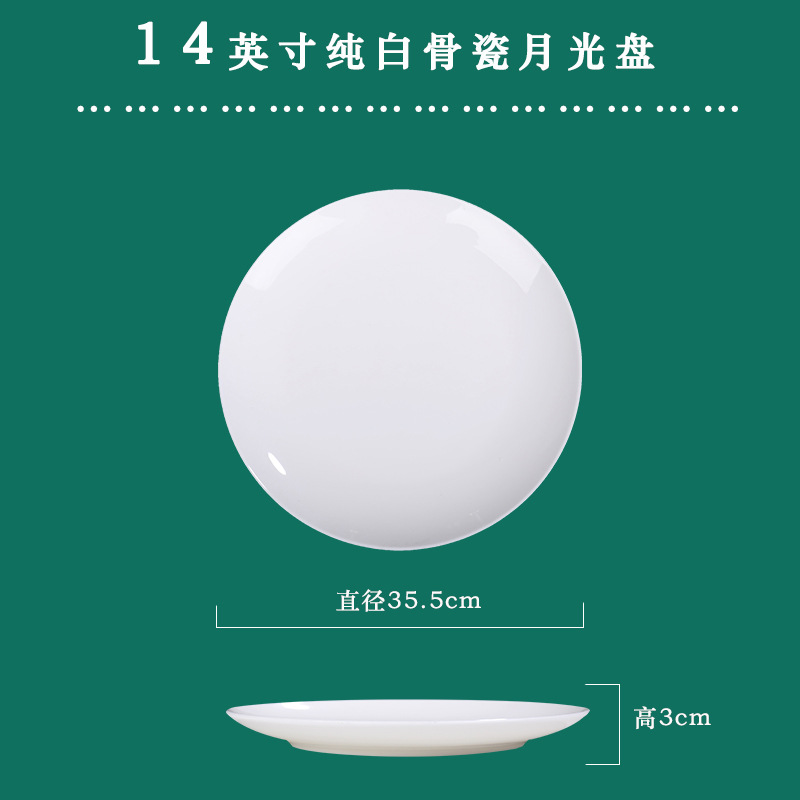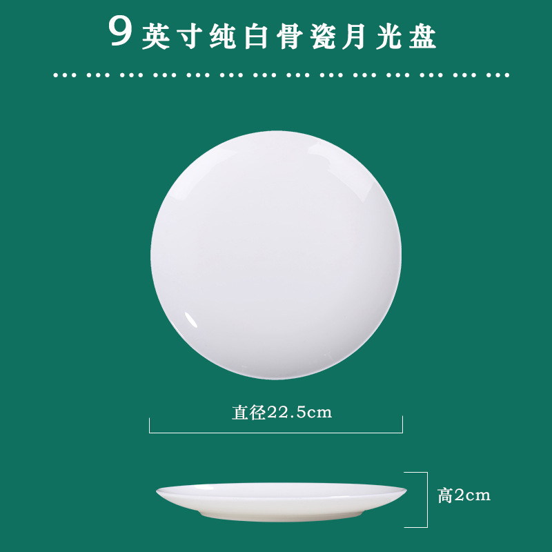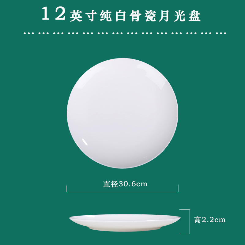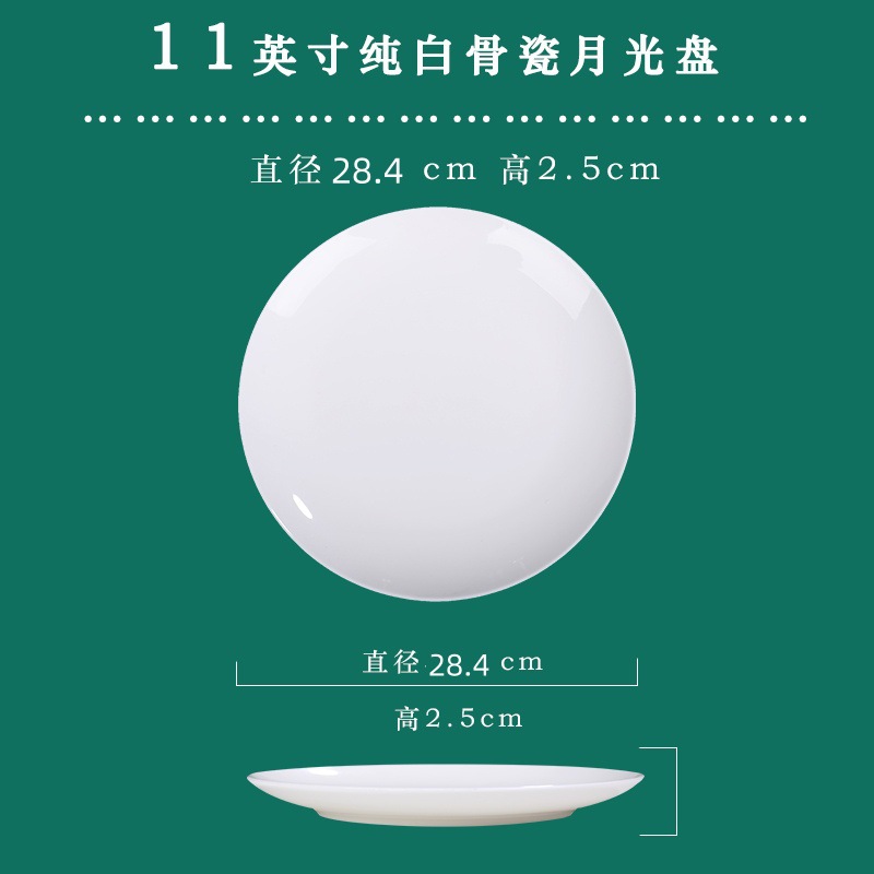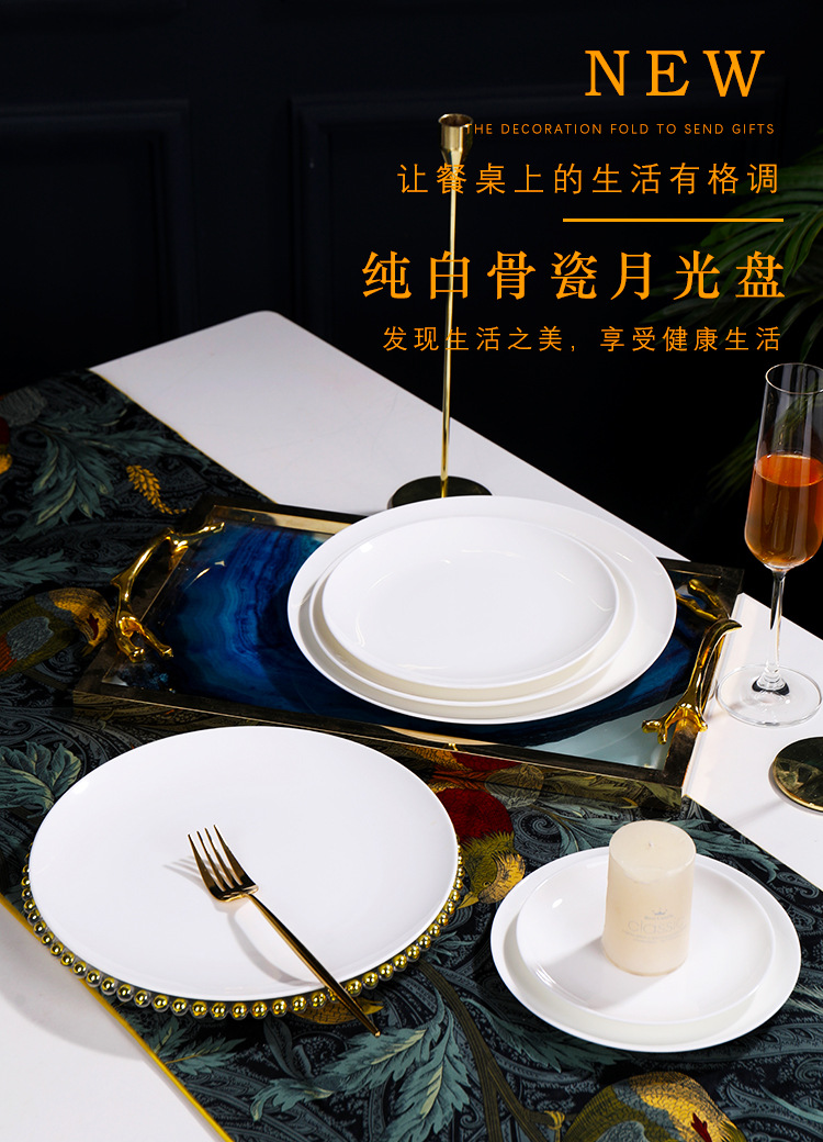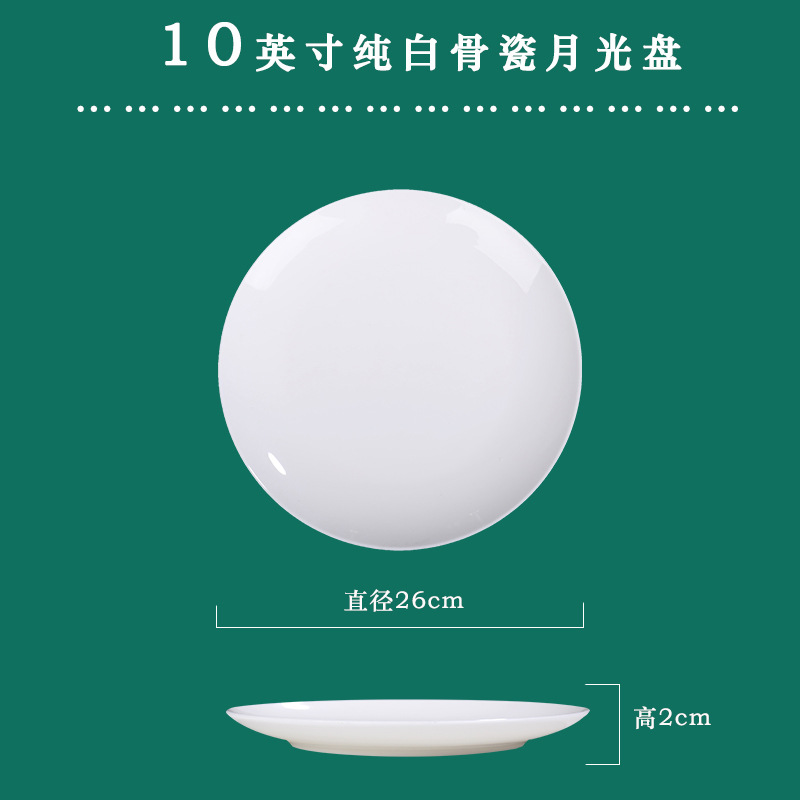 Jingdezhen 순백본 중국 접시 접시 가정 달빛 접시 크기 스테이크 식사 서양 음식 플랫 플레이트 세라믹 식기