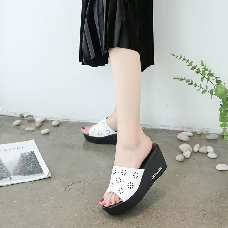 하이힐 슬리퍼 여성용 2023 여름 새 복장 미끄럼 방지 플랫폼 웨지 두꺼운 단독 샌들 여성용 게으른 샌들
