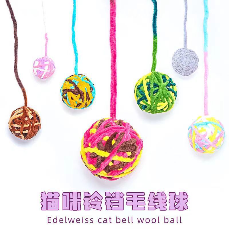 공장 도매 고양이 장난감 벨 컬러 울 볼 고양이 자기 구제 지루한 물린 고양이 어금니 장난감
