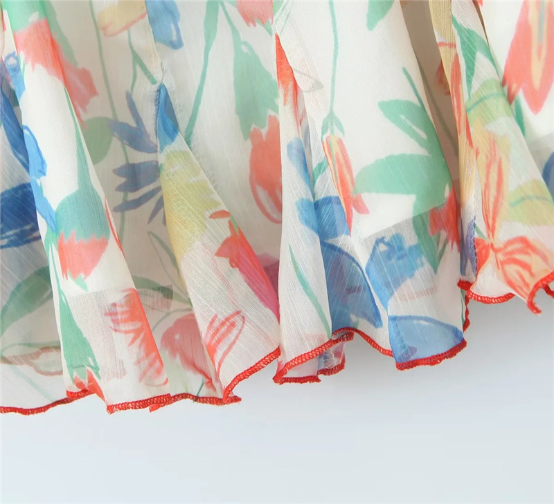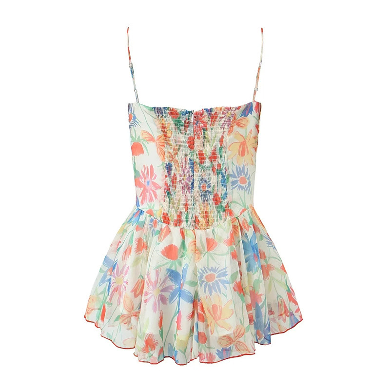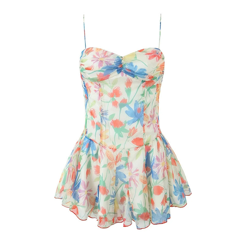 휴가 스타일 섹시 프린트 슬립 스커트 여름 신상품 슬림 핏 슬리밍 가슴 주름 여성을위한 달콤하고 매운 원피스 스커트