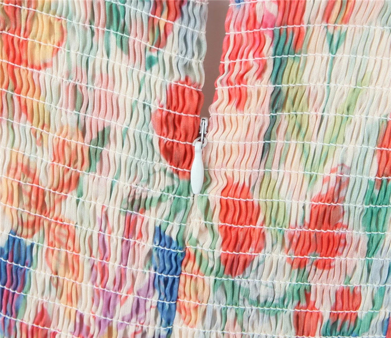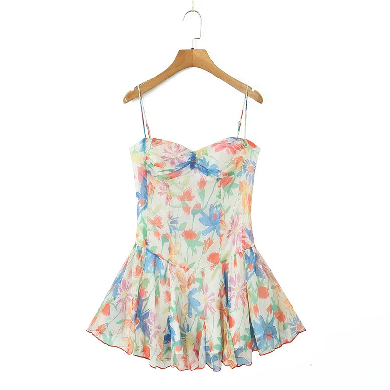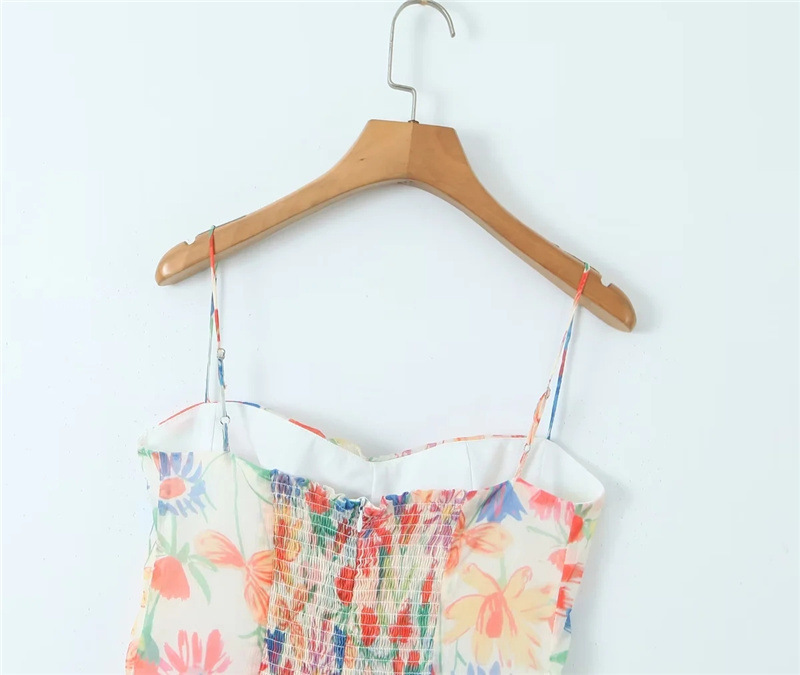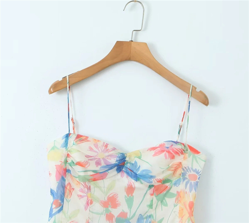 휴가 스타일 섹시 프린트 슬립 스커트 여름 신상품 슬림 핏 슬리밍 가슴 주름 여성을위한 달콤하고 매운 원피스 스커트스토어 가기