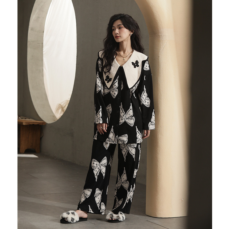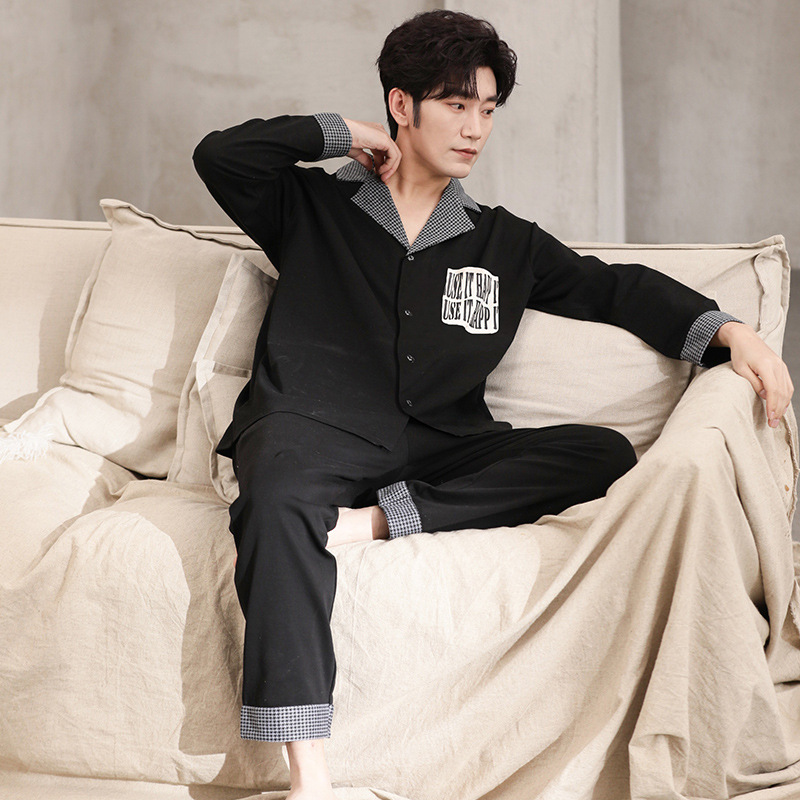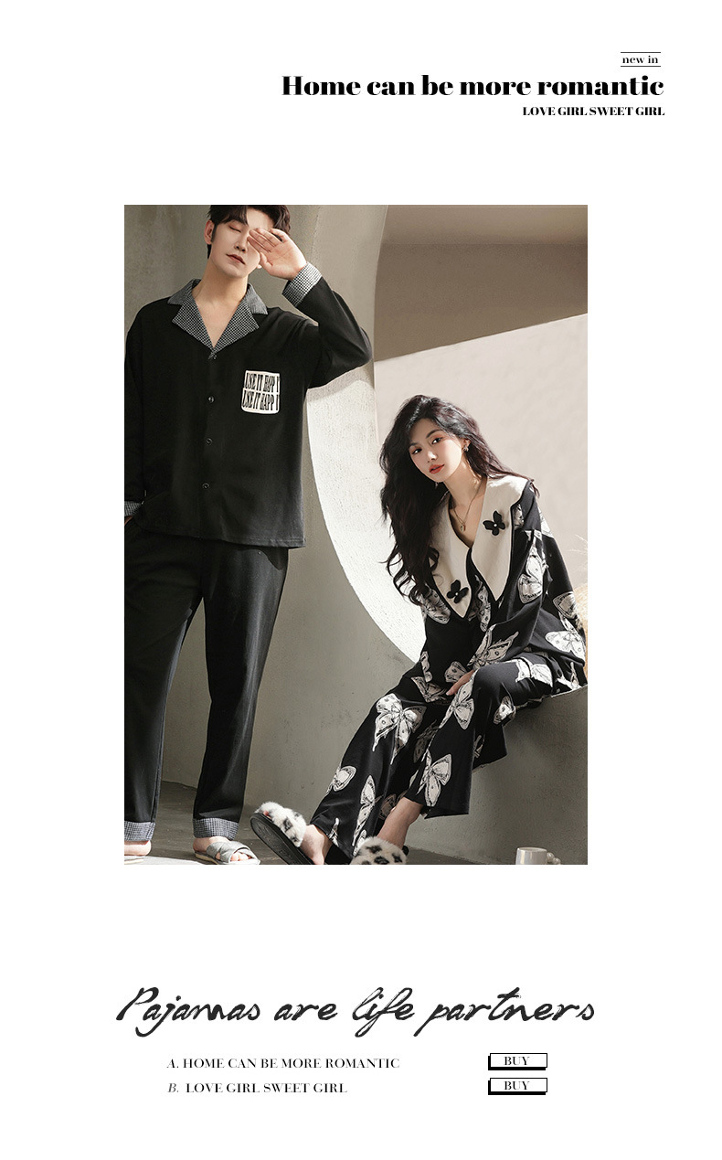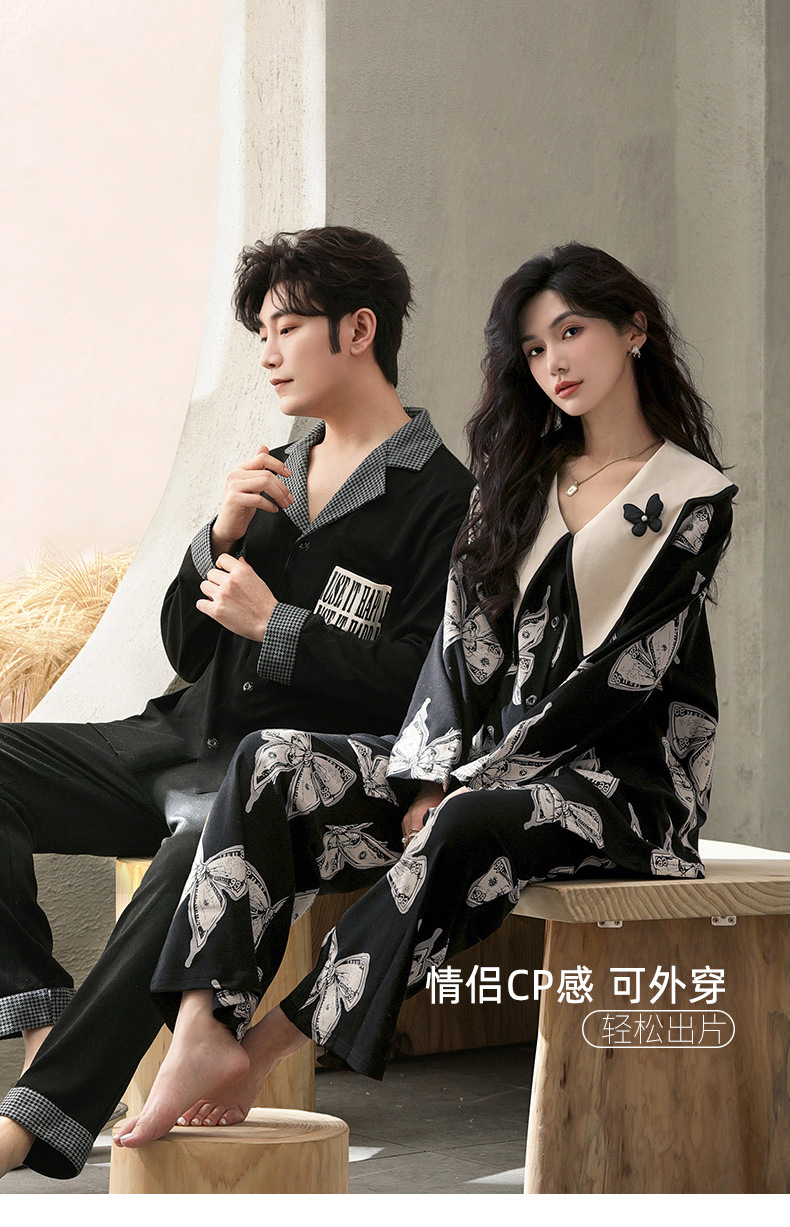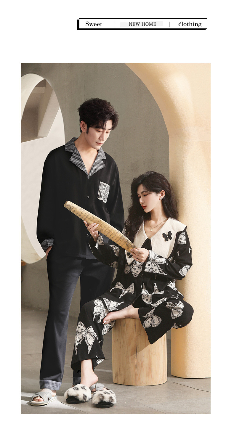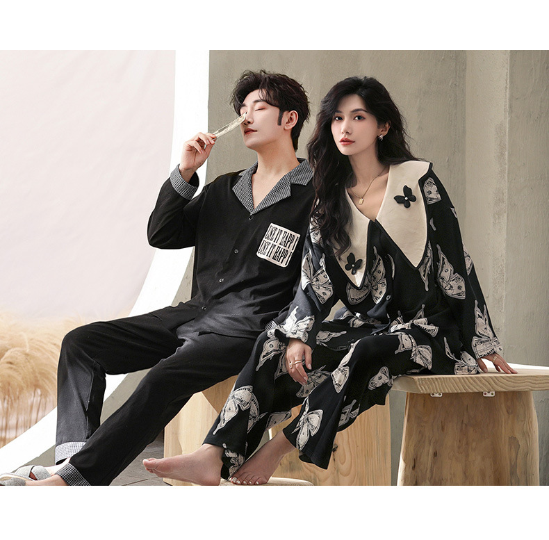 커플 잠옷 여자의 봄과 여름 면 긴 소매 바지 가정 의류 캐주얼 남자의 봄과 가을 세트 공장 아울렛스토어 가기