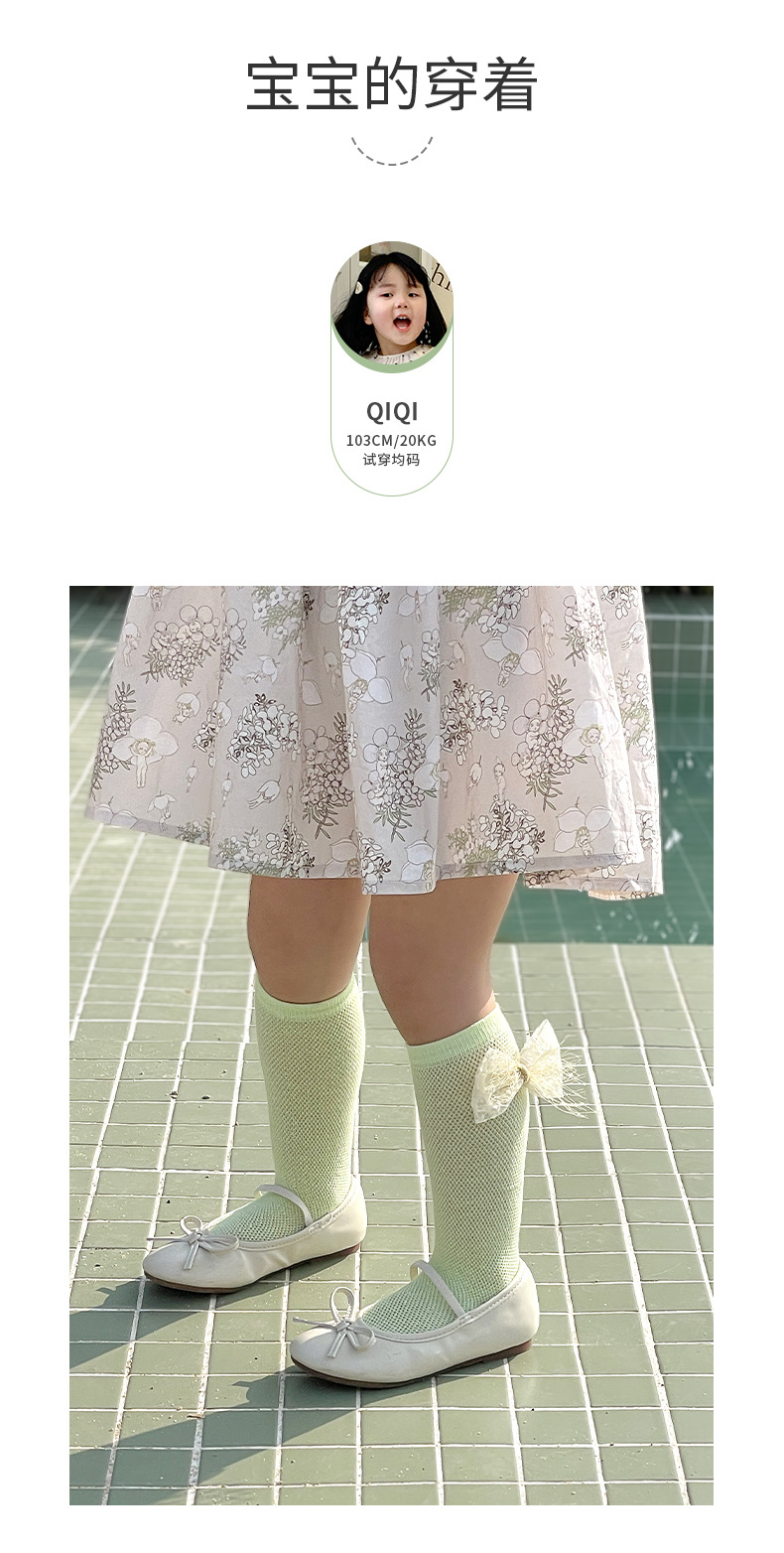 Bowknot 여아 미드 튜브 양말 여름 메쉬 통기성 어린이 양말 아기 느슨한 입 부모-자식 면 양말 얇은
