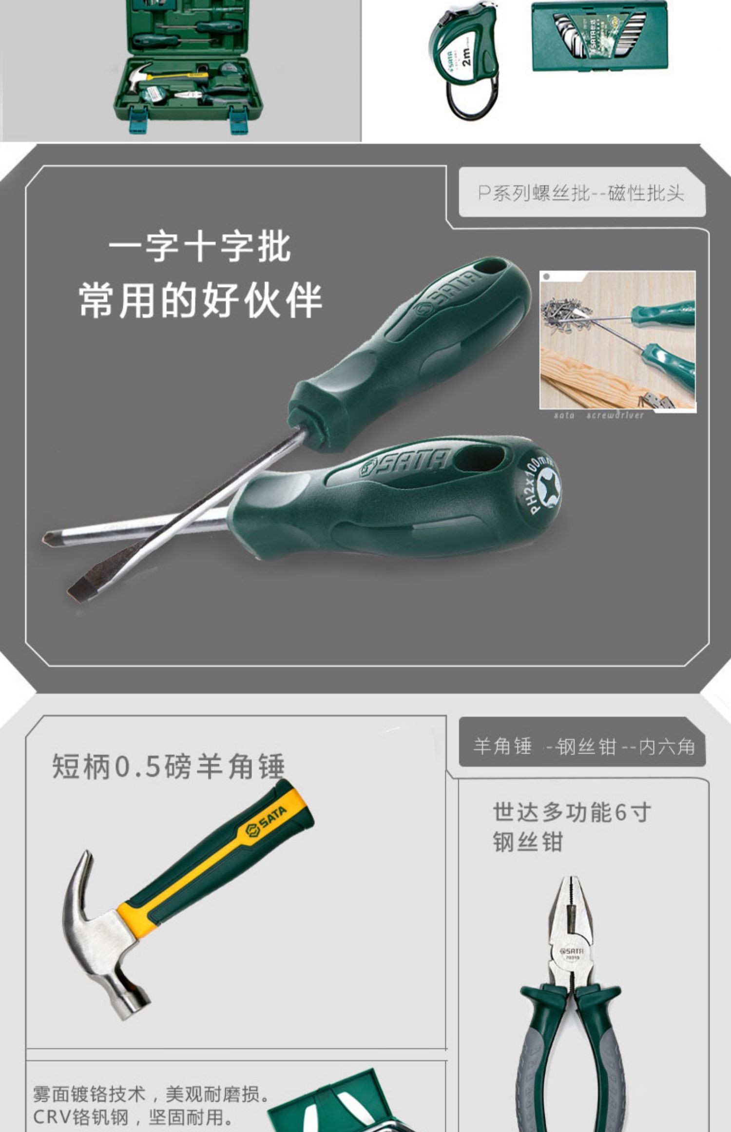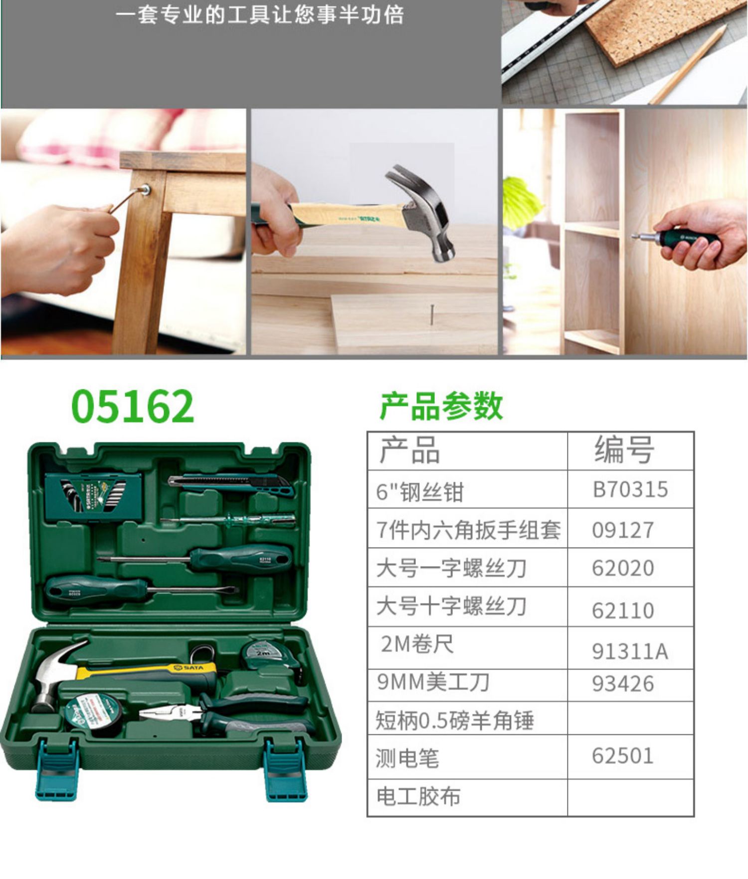 Shida 가정용 하드웨어 도구 15 개 세트 가정용 일반 렌치 실용적인 설치 조합 도구 상자 05162